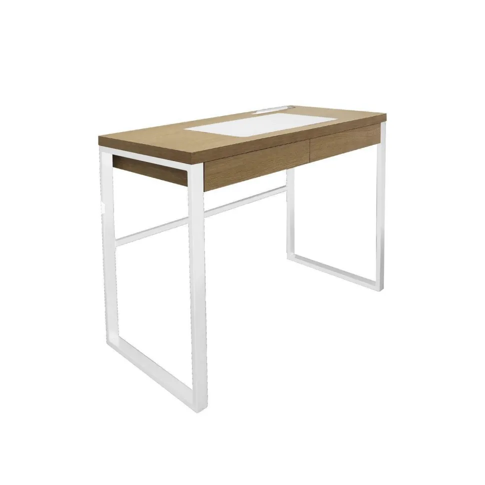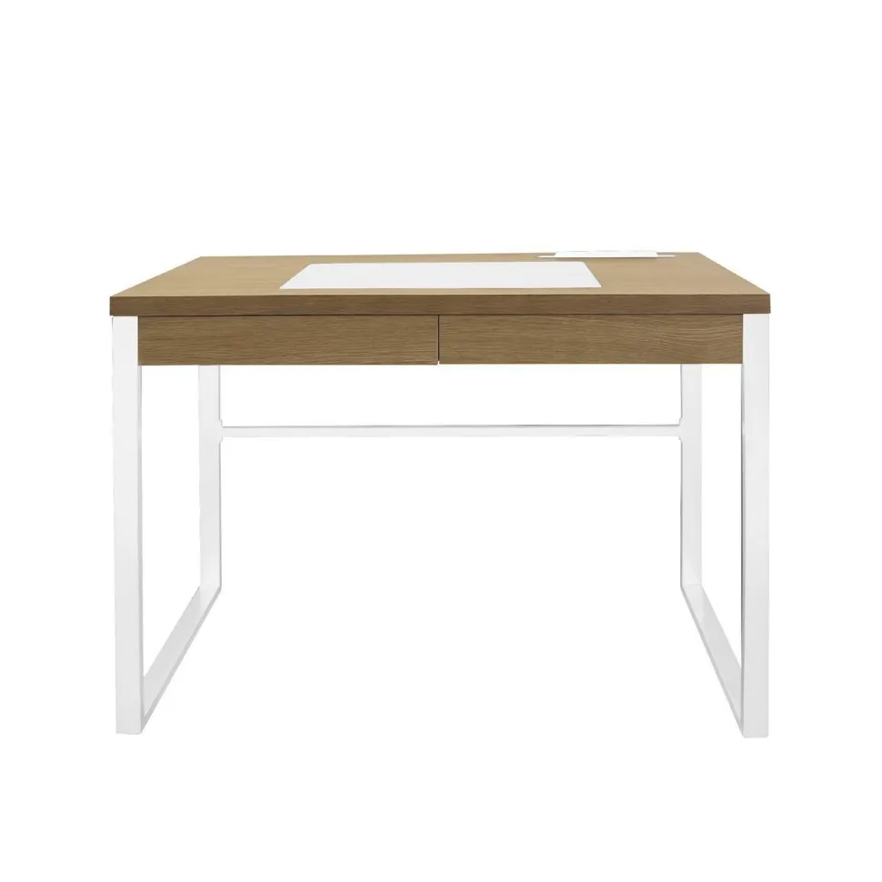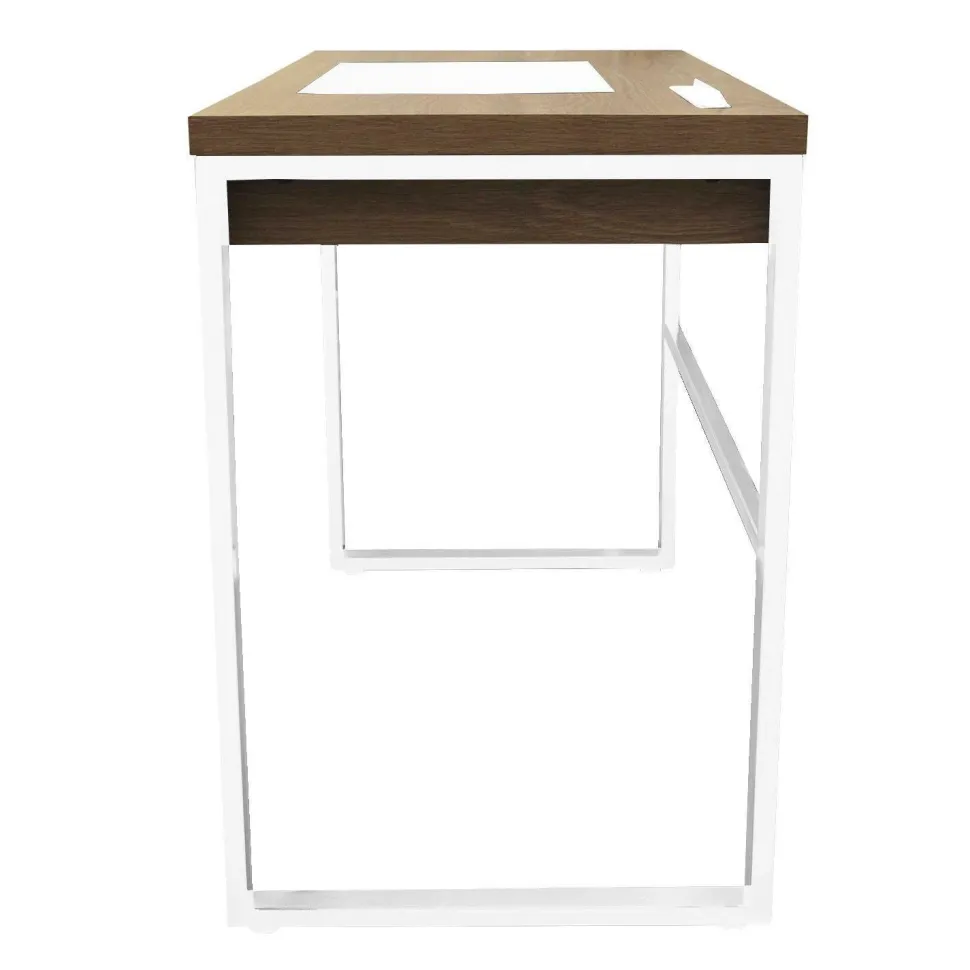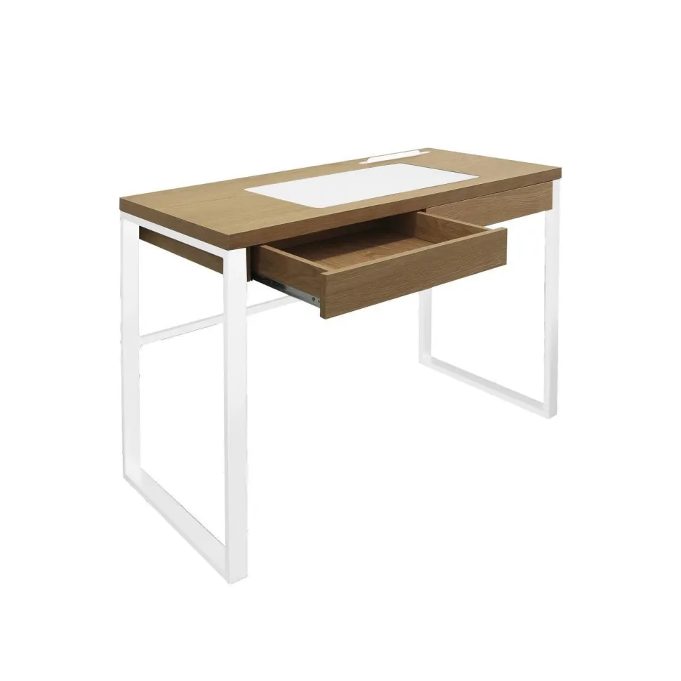 Biurko Dolem Industrial z antypoślizgową podkładką z ekoskóry jest przykładem nowoczesnego designu, który kocha funkcjonalność. Wykończony okleiną dębową blat biurka posiada pojemną wysuwaną szufladę, która z łatwością pomieści akcesoria potrzebne do pracy. Solidnabiała podstawa wykonana z metalu nadaje całości surowego industrialnego akcentu. Wbudowany podkład z ekoskóry zapobiega przesuwaniu dokumentów, ale może również służyć jako elegancka podkładka na myszkę. Projektanci tego biurka industrialnego pomyśleli także o posiadaczach nowoczesnych technologii. Dyskretna metalowa rynienka będzie doskonałą podstawką na tablet lub smartfon. Biurko Dolem Industrial o wymiarach 100x76x50 cm stanie się centrum dowodzenia w nowocześnie urządzonym biurze lub gabinecie. Podkładka umieszczona na blacie jest na stałe i nie ma możliwości jej usunięcia.
