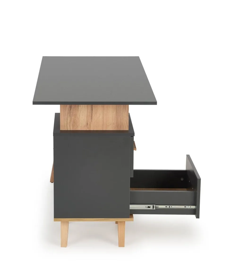 Kolor antracyt mati dąb wotan nadaje biurku eleganckiego i nowoczesnego wyglądu. Pasuje do różnych stylów wnętrz, dodając im charakteru i stylu.Biurko Exena to nie tylko praktyczne i funkcjonalne rozwiązanie, ale również estetyczne i trwałe. Dzięki niemu możesz cieszyć się komfortem pracy i mieć pewność, że będzie Ci służyć przez wiele lat. Niezależnie od tego, czy pracujesz w domu, czy w biurze, to biurko spełni Twoje oczekiwania i zapewni Ci idealne warunki do skutecznej i wydajnej pracy.