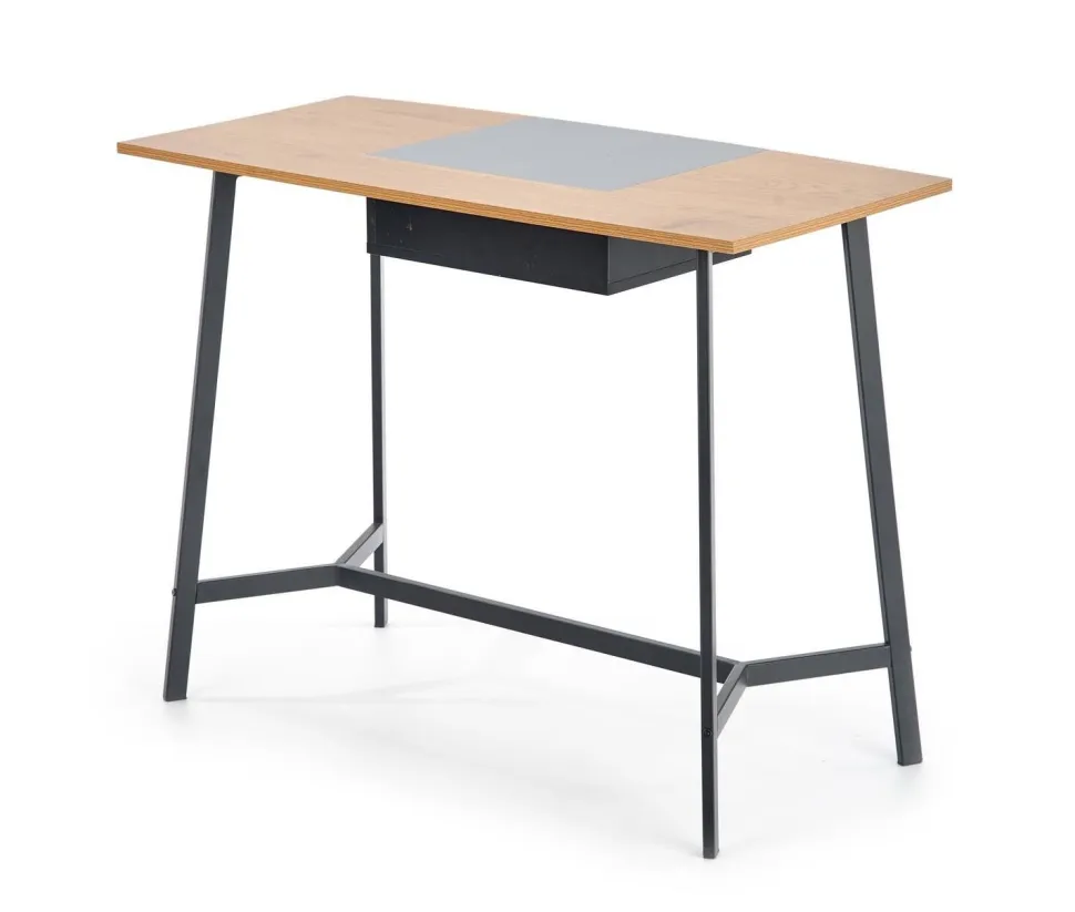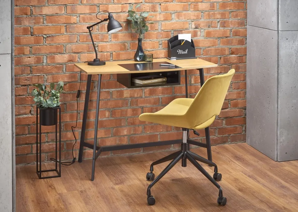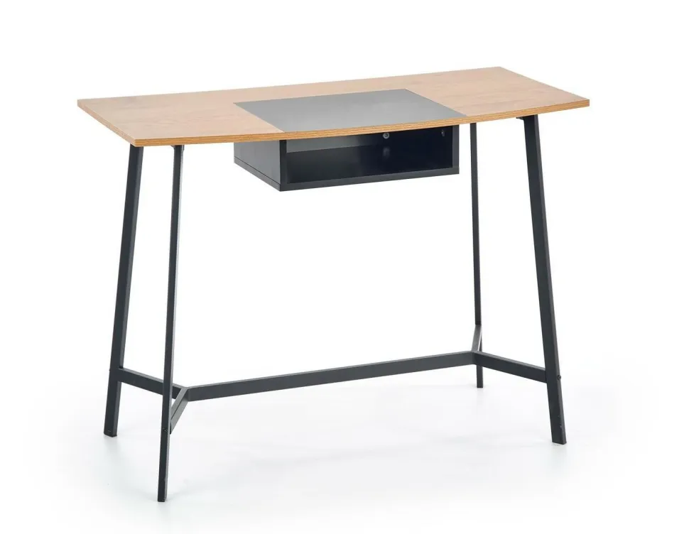 Biurko Inner dąb złoty/ czarny Biurko Inner to połączenie funkcjonalności i unikalnego designu, które wyróżni się w każdej przestrzeni. Inner to mebel stworzony z myślą o nowoczesnych i loftowych aranżacjach. Wykonane z okleinowanego MDF oraz stali malowanej proszkowo, łączy w sobie wytrzymałość z estetyką. Kombinacja kolorów – dąb złoty i czarny – nadaje mu elegancji i kontrastu. Biurko Inner to zarówno praktyczne miejsce pracy, jak i wyjątkowy element dekoracyjny. Wyposażone w jedną półkę, mebel oferuje miejsce na przechowywanie dokumentów czy laptopa, pomagając zachować porządek wokół. Nietypowy design nadaje mu charakteru, a elegancki dąb złoty oraz czarny kolor podstawy dodają mu nowoczesnej estetyki. To biurko jest idealnym wyborem dla osób poszukujących mebli o niebanalnym wyglądzie. Wyjątkowy design sprawia, że mebel Inner wyróżni się w każdym wnętrzu, wprowadzając unikalny akcent do przestrzeni. Przygotuj się na mądry wybór! Biurko Inner to doskonałe połączenie praktyczności i oryginalnego designu, tworząc mebel zarówno funkcjonalny, jak i estetyczny. MDF okleinowany oraz stal malowana proszkowo gwarantują trwałość mebla na lata. Kombinacja kolorów – dąb złoty i czarny – dodaje meblowi elegancji i kontrastu. Jedna półka na przechowywanie dokumentów czy laptopa. Nietypowy design mebla Inner wyróżni się w każdym wnętrzu, dodając mu niepowtarzalnego charakteru.