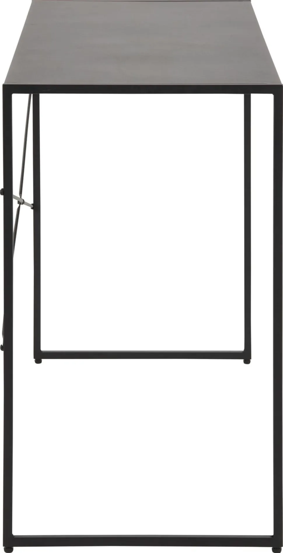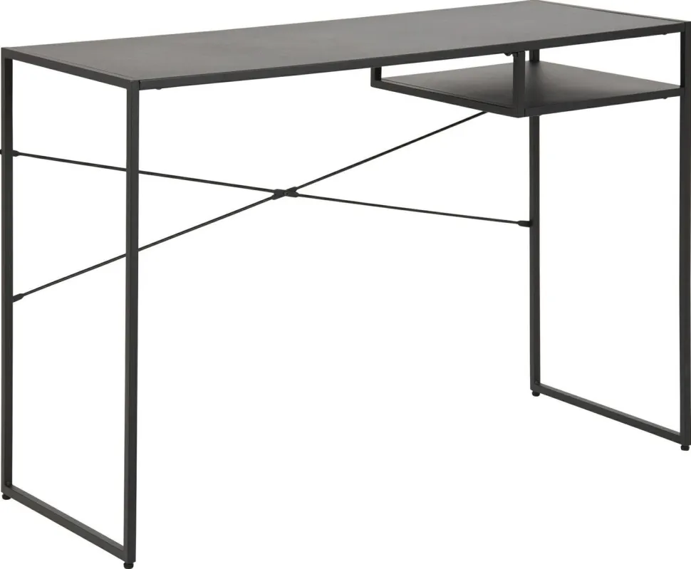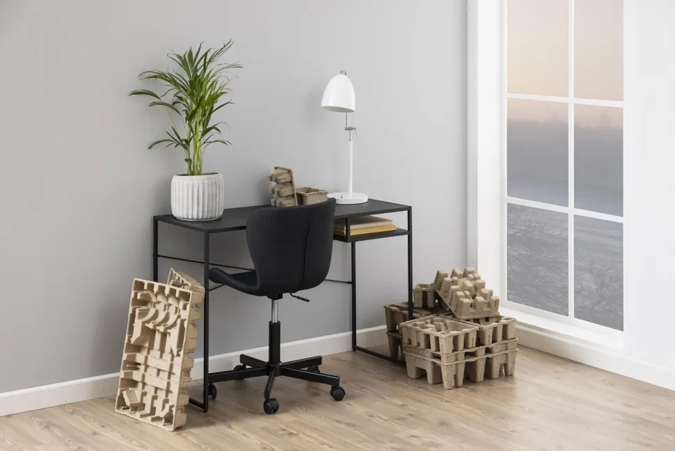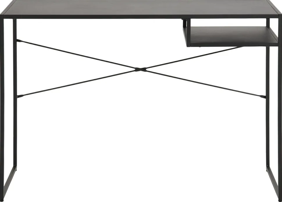 Biurko Newcastle jest wykonane z metalu malowanego proszkowo. Matowe wykończenie powierzchni wygląda niezwykle elegancko i stylowo. Po prawej stronie mebla znajduje się półka – możesz w niej ukryć drobiazgi, które chcesz mieć pod ręką. Dopełnieniem całości są smukłe, czarne nogi.