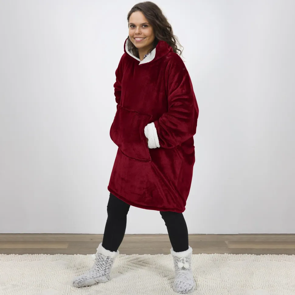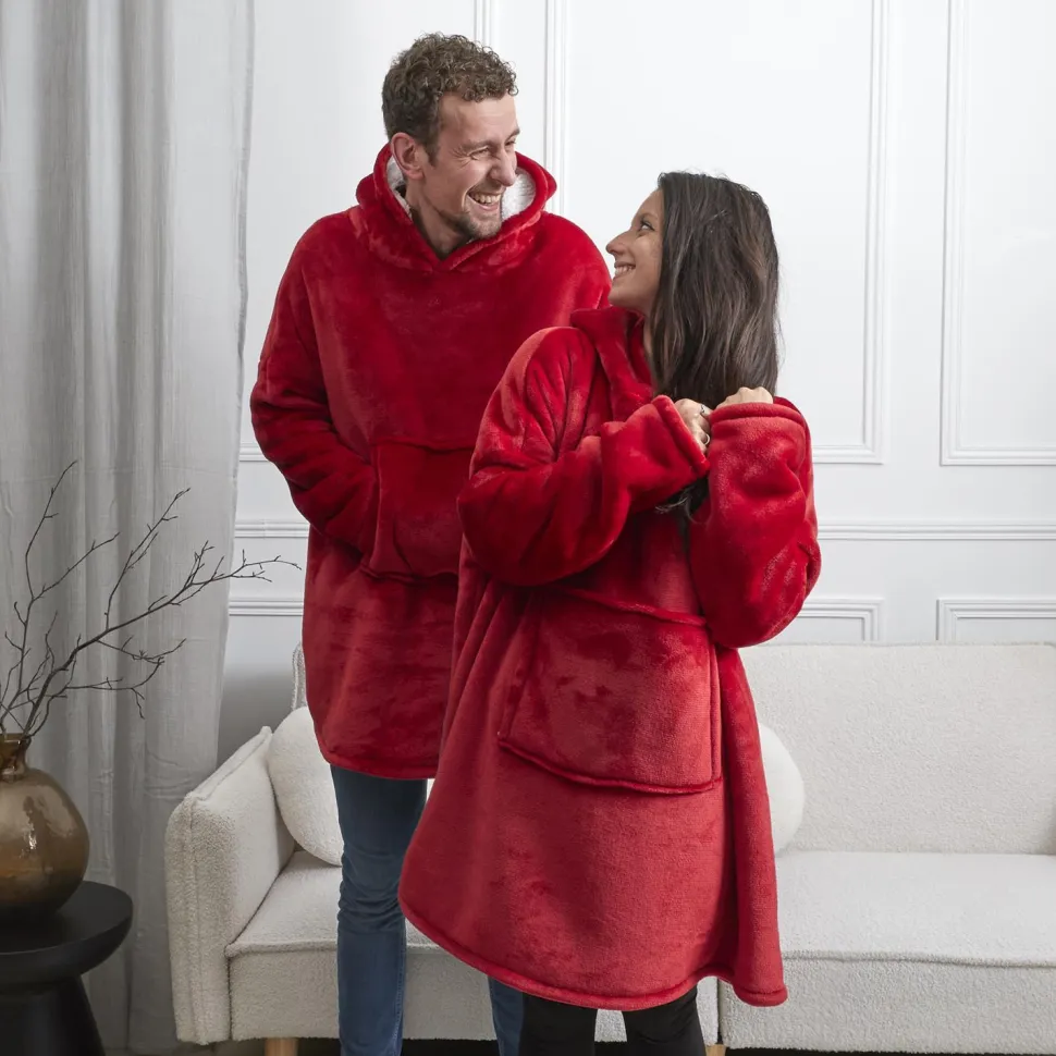 Bluza ocieplana szeroka z kieszenią czerwona – Twój towarzysz na zimowe wieczory!