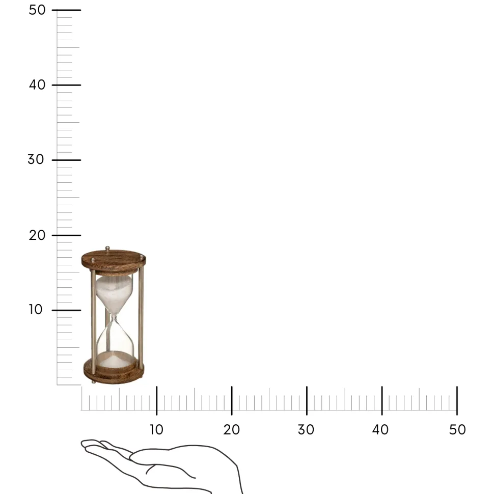 Mieszanka materiałów i naturalny piasek nadają jej autentyczny wygląd. Dzięki przesypującemu się piaskowi, akcesorium to pozwoli odmierzać czas, jednocześnie dekorując przestrzeń mieszkalną. Klepsydra ma wymiary 8x8x16 cm, co sprawia, że będzie świetnie wyglądać w każdym miejscu. Wykonana z drewna i szkła, gwarantuje wytrzymałość i długą żywotność produktu. Jedno pełne przesypianie piasku w klepsydrze zajmuje 5 minut. Nie czekaj dłużej i już dziś kup klepsydrę i ciesz się z kontroli czasu!