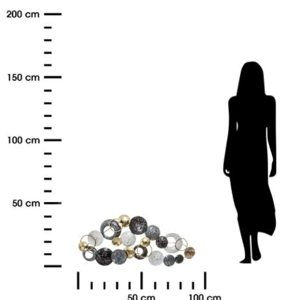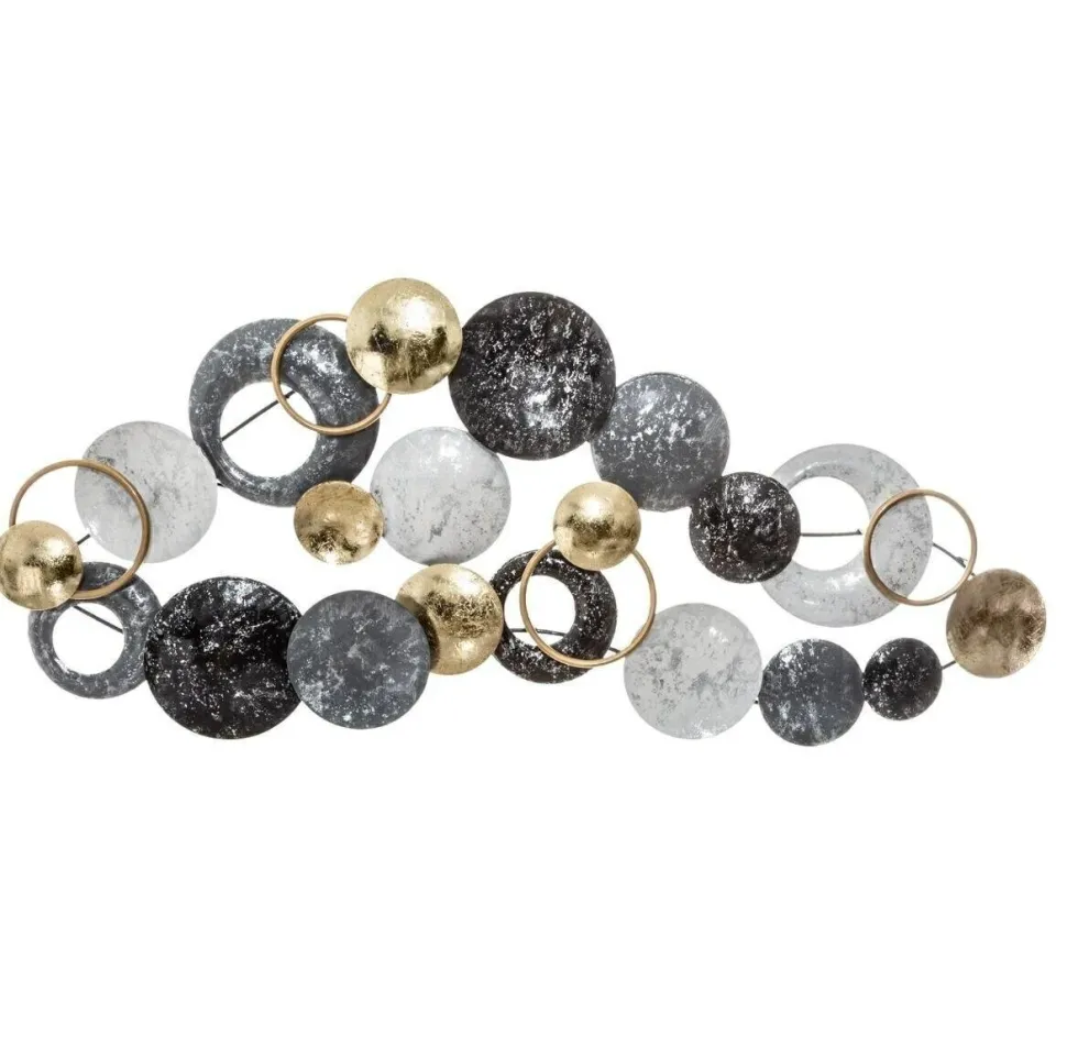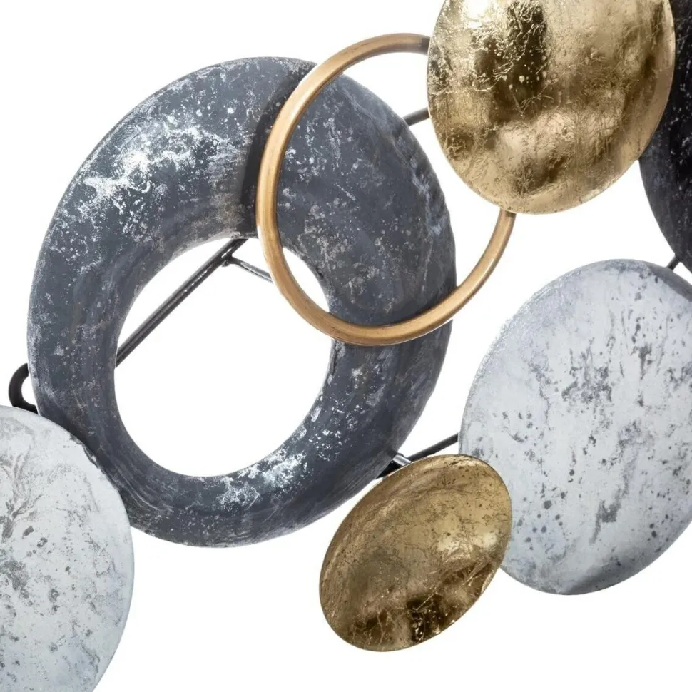 Dekoracja ścienna Lali to niepowtarzalne zestawienie okrągłych metalowych elementów o zróżnicowanych rozmiarach i kolorach. Każdy element, wykonany z malowanego i postarzanego metalu, wnosi niepowtarzalny charakter i estetykę do przestrzeni, w której się znajduje.