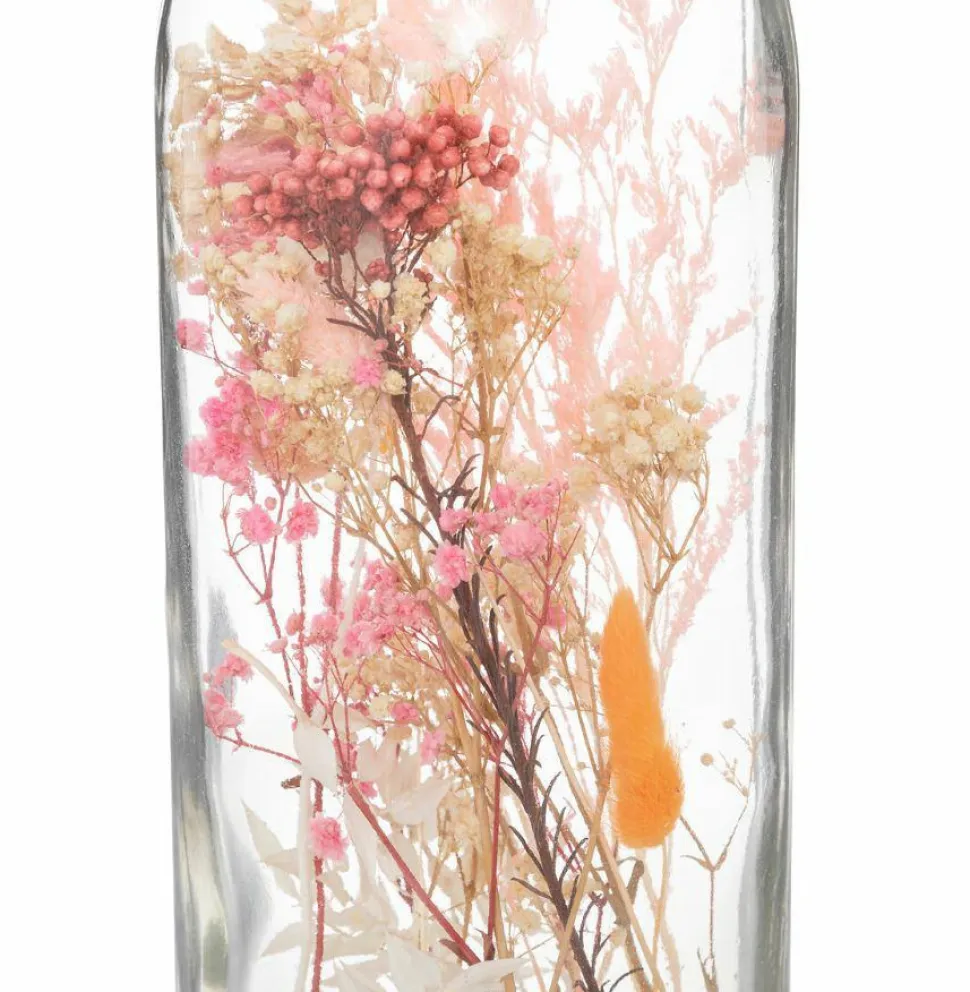 Dekoracja w postaci szklanej butelki z naturalnymi suszonymi roślinami to dekoracja w stylu boho, która doda odrobinę artyzmu i harmonii. Ciekawe kolory i kształty współgrają ze sobą tworząc interesującą kompozycję.