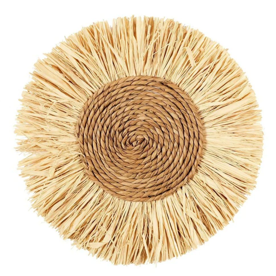 Dodaj odrobinę stylu boho do swojego domu dzięki tym naturalnym dekoracjom z rafii. Te okrągłe, plecione dekoracje są dostępne w dwóch rozmiarach i są idealnym dodatkiem do każdego pomieszczenia, w którym panuje relaksujący, naturalny klimat.