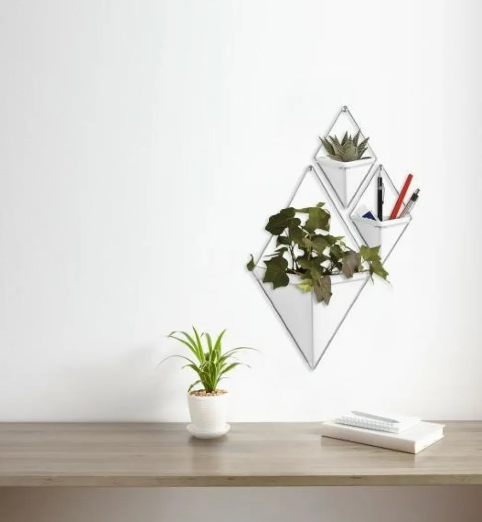 Doniczka Trigg marki Umbra to doskonałe rozwiązanie dla osób, które szukają alternatywy dla klasycznych doniczek. Niklowa rama idealnie współgra z ceramiczną doniczką w geometrycznum stylu. Projektantka Moe Takemura tworzy niepowtarzalne rzeczy, które łączą ze sobą szwedzką prostotę z japońskim, eleganckim minimalizmem.