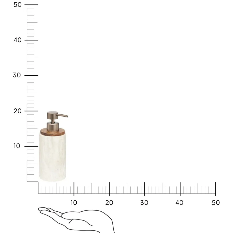 - Dozownik do mydła Côme efekt marmuru ma wymiary 7,1 cm x 7,1 cm x 19,3 cm, dzięki czemu zmieści się nawet w małej łazience.