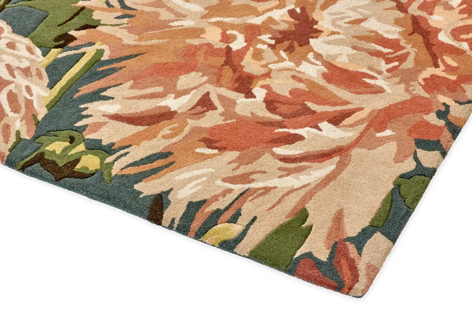 DywanDahliaCoral Wilderness to nie tylko estetyczny dodatek do wnętrza, ale również funkcjonalny element, który łączy w sobie wyjątkową jakość wykonania z praktycznym zastosowaniem.Wykonany w 100% z wełny, dywanto arcydzieło rzemiosła,tkane ręcznie dla osiągnięcia doskonałej jakości.