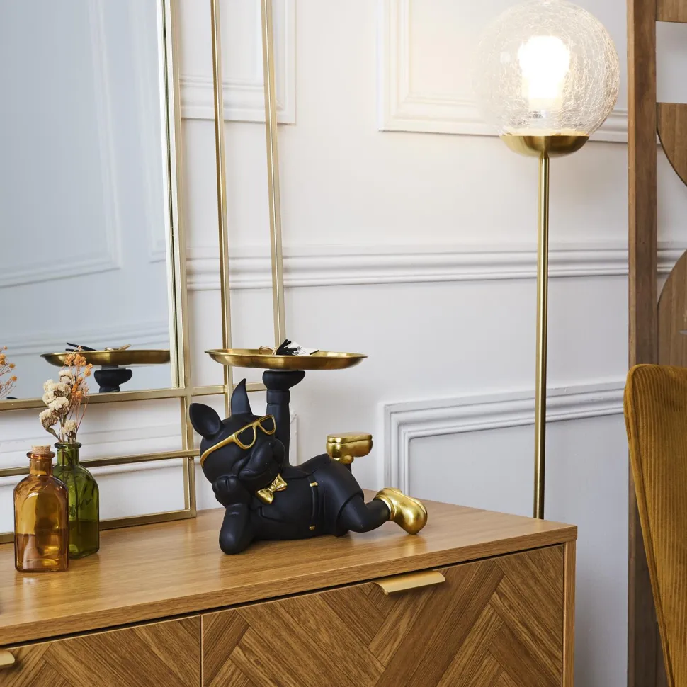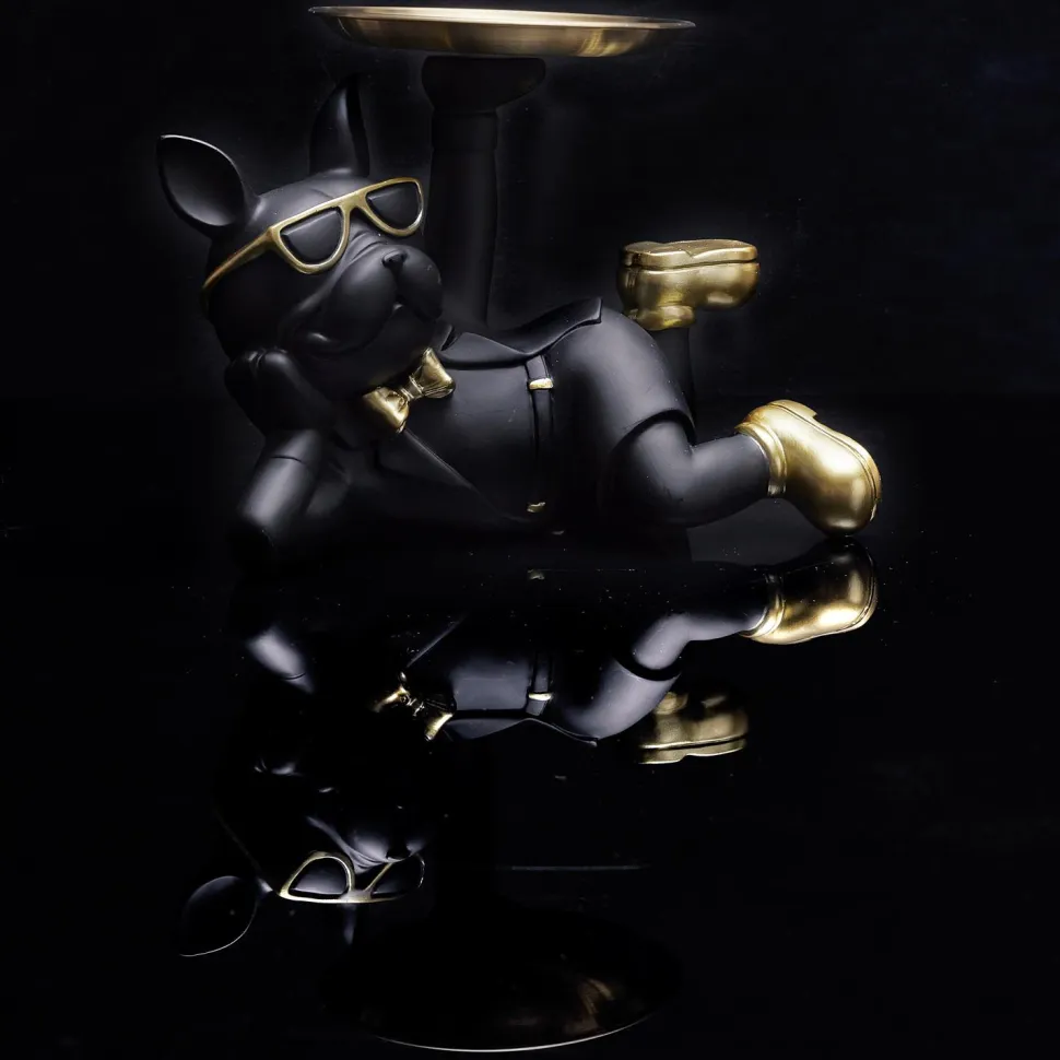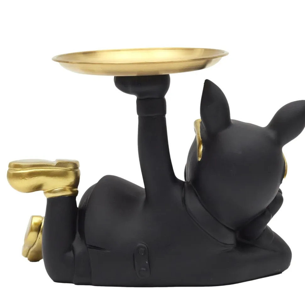 Figurka buldoga leżącego z tacą w kolorze czarnym to doskonały wybór dla tych, którzy pragną dodać do swojego wnętrza elegancji i unikalnego uroku. Ta urokliwa figurka przedstawia buldoga w wygodnej, leżącej pozycji z tacą umieszczoną na grzbiecie. Idealna do przechowywania drobnych akcesoriów lub jako dekoracja, z pewnością przyciągnie uwagę i stanie się centralnym punktem w każdym pomieszczeniu.