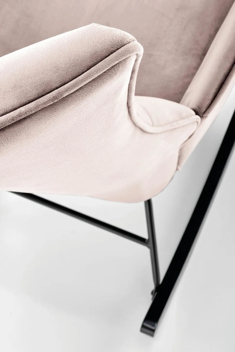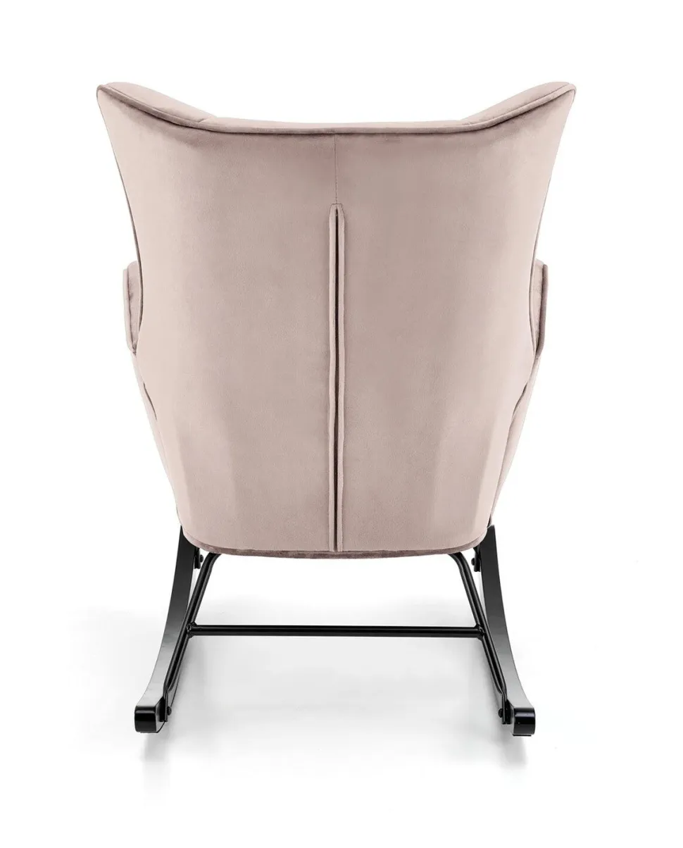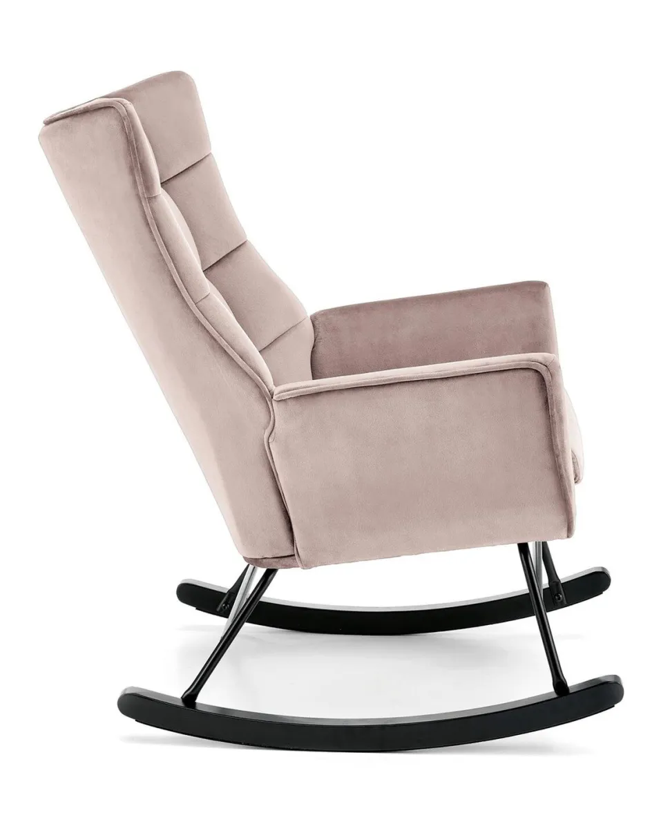 Fotel bujany Topar to idealny mebel dla tych, którzy pragną dodać swojemu wnętrzu nutę nowoczesności i skandynawskiego stylu. Tapicerowany przyjemną w dotyku tkaniną welurową, fotel oferuje wyjątkowy komfort i elegancję. Jego solidna podstawa z metalowymi biegunami zapewnia nie tylko stabilność, ale również delikatne bujanie, które sprzyja relaksowi.