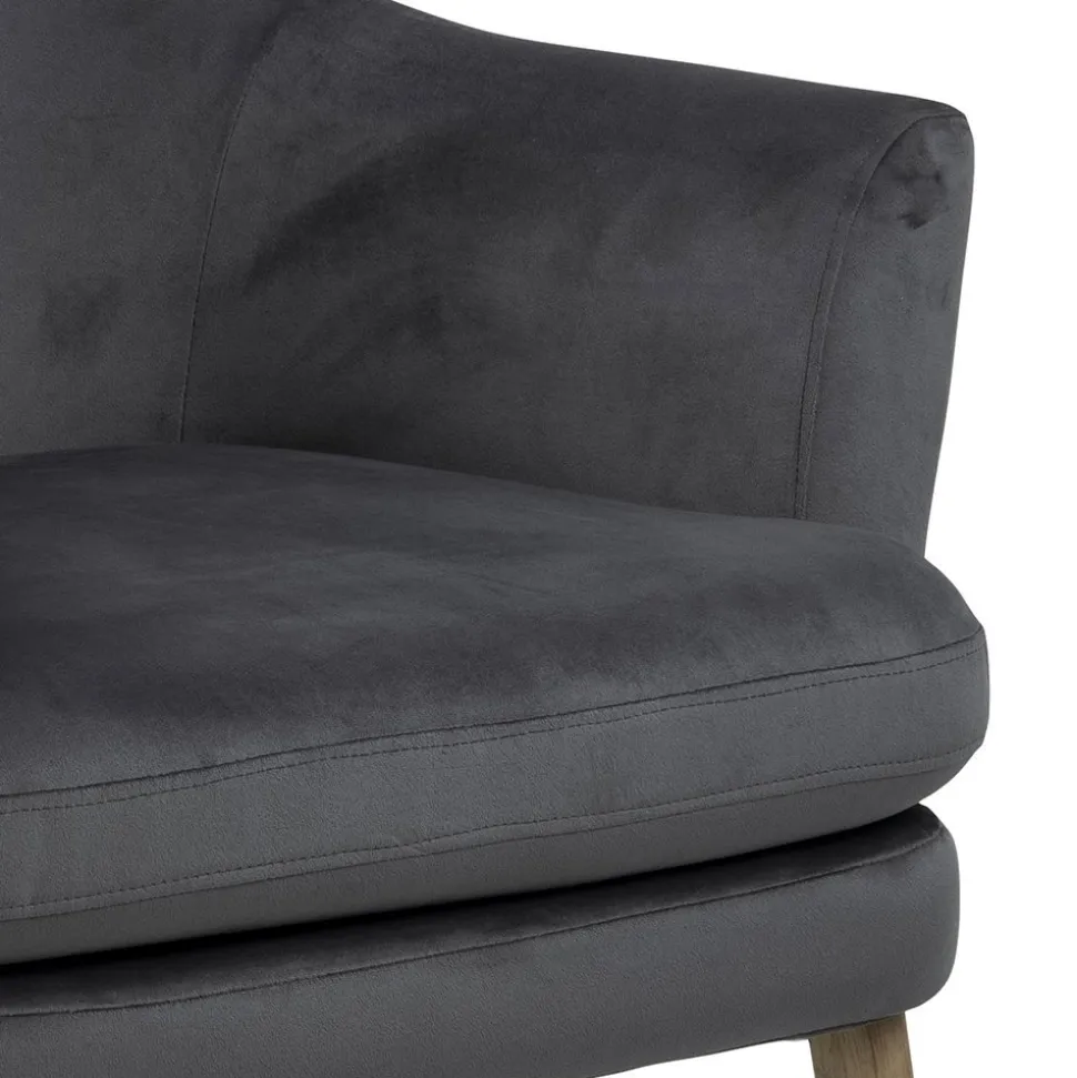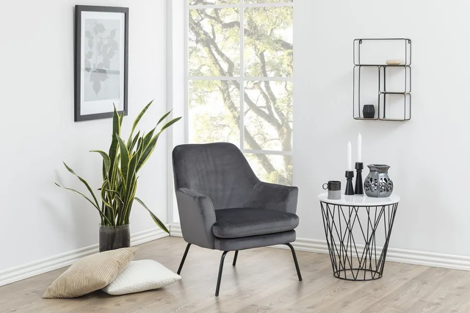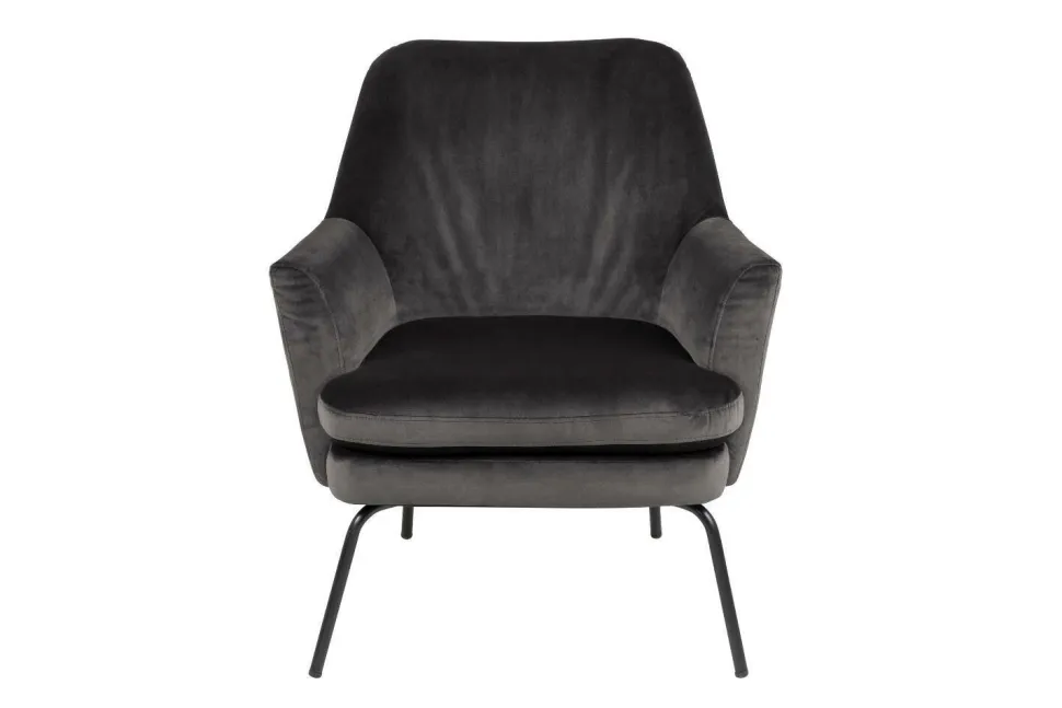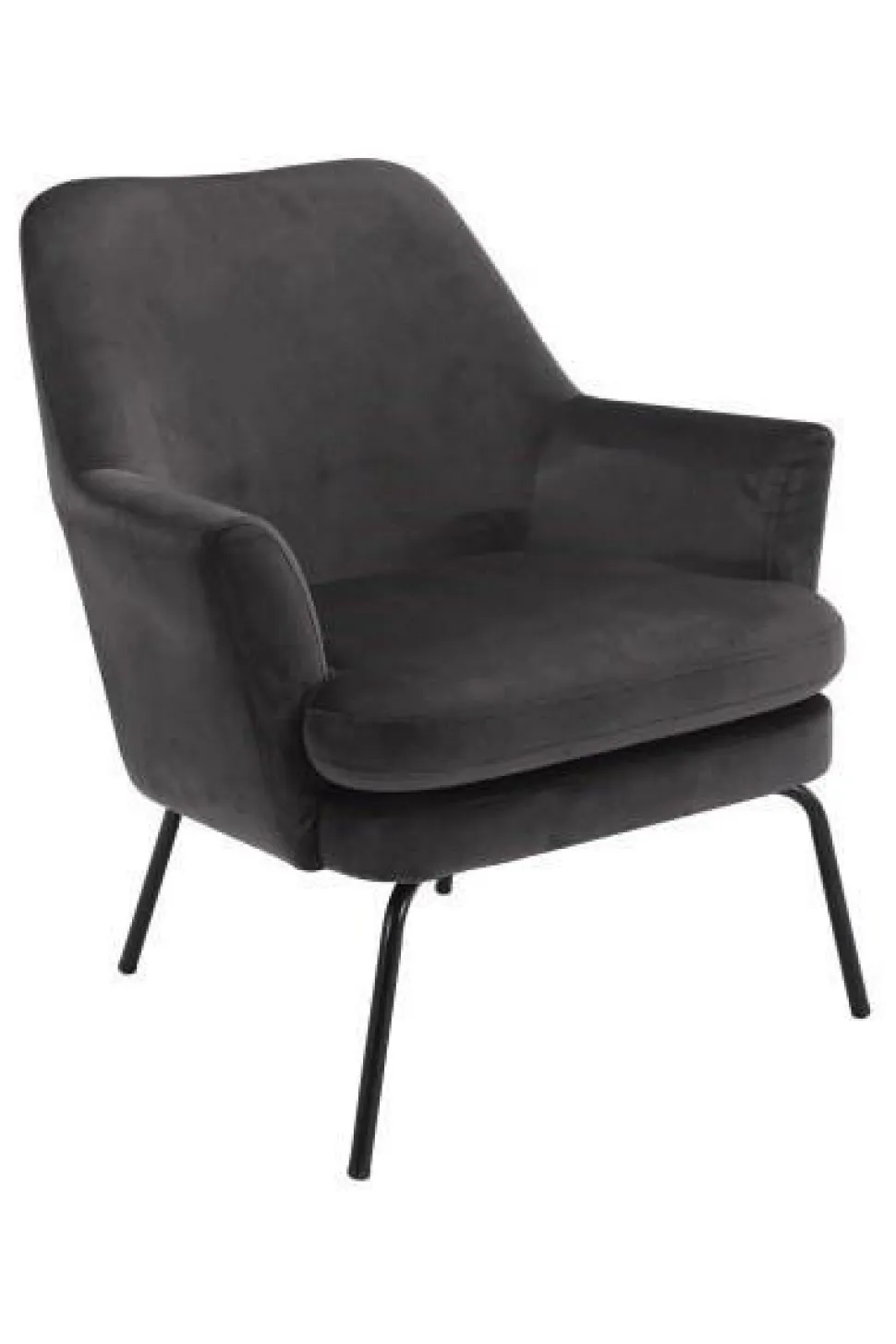 Fotel Chisa jest niezwykle wygodnym i efektownym meblem użytkowym. Siedzisko tapicerowane tkaniną welwetową w pastelowej kolorystyce połączone zostało z metalową podstawą malowaną proszkowo na kolor czarny.