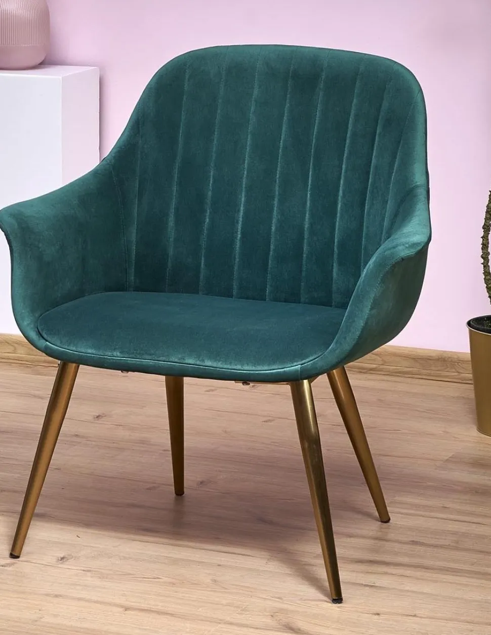 Ciemnozielona tapicerka nadaje wnętrzu elegancji i wyrafinowania, podczas gdy złote nogi dodają mu luksusowego wyglądu. Nie tylko wygląd fotela Dasco jest imponujący, ale również jego wygoda. Wygodne siedzisko zapewnia doskonałe wsparcie dla pleców i zapewnia maksymalny komfort podczas użytkowania. Czytanie książki, oglądanie filmów czy relaks po ciężkim dniu staje się jeszcze przyjemniejsze dzięki temu fotelowi. Odpowiednie wymiary fotela Dasco pozwalają na łatwe dopasowanie go do różnych przestrzeni.