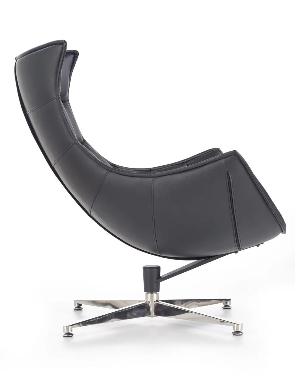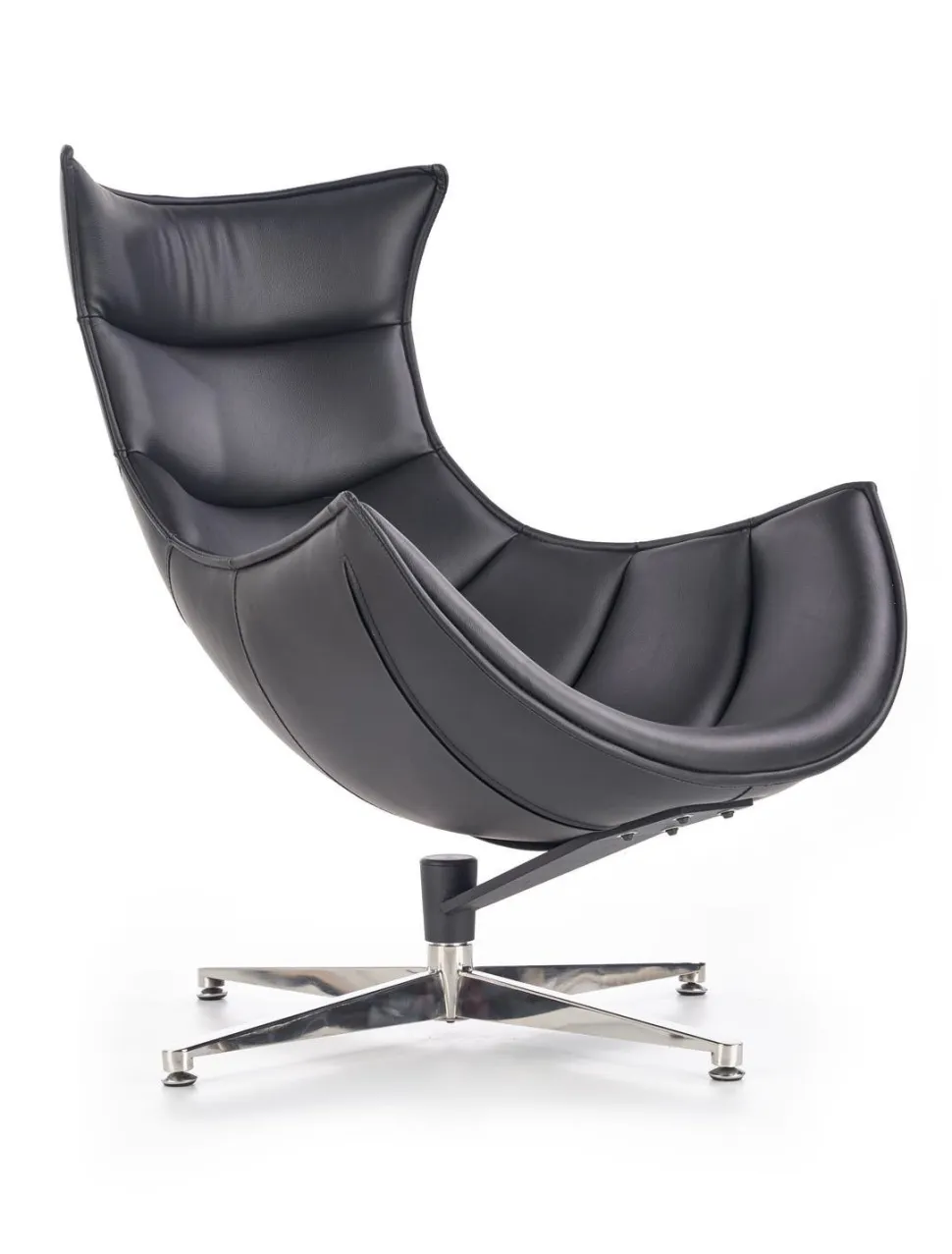 Odważny i nowoczesny fotel Falvio czarny – | Intesi Fotel Falvio od Intesi to odważne rozwiązanie. Wykonany ze skóry kompozytowej i stali nierdzewnej, nowoczesny fotel posiada obrotowe siedzisko i z pewnością będzie przyciągającym wzrok dodatkiem do każdego pomieszczenia. Przedstawiamy fotel Falvio – idealne połączenie klasycznego, nowoczesnego designu i innowacyjnego rzemiosła! Klasyczny fotel ma elegancką ramę ze stali nierdzewnej ze srebrnymi nogami, które tworzą zwiewną sylwetkę. Aby uczynić go jeszcze bardziej zachęcającym, jego poduszka jest tapicerowana trwałą tkaniną ze skóry kompozytowej. Ponadto, dzięki wygodnemu siedzisku o wysokości 36 cm i funkcji obrotowej, z pewnością doświadczysz maksymalnego relaksu za każdym razem, gdy usiądziesz na tym fotelu. Niezależnie od tego, czy przyjmujesz gości, czy przeznaczasz trochę czasu dla siebie, mebel z pewnością zaspokoi wszystkie Twoje potrzeby. Fotel Falvio zapewnia idealną równowagę między stylem i komfortem – kup go już dziś! O tym warto pamiętać! Ponadczasowy, nowoczesny design z srebrną stalową ramą Tapicerowane siedzisko i oparcie z wytrzymałej skóry kompozytowej. Obrotowe siedzisko dla dodatkowego komfortu i wygody. Duże wymiary zapewniające maksymalny komfort dla wszystkich. Łatwy w utrzymaniu czystości.