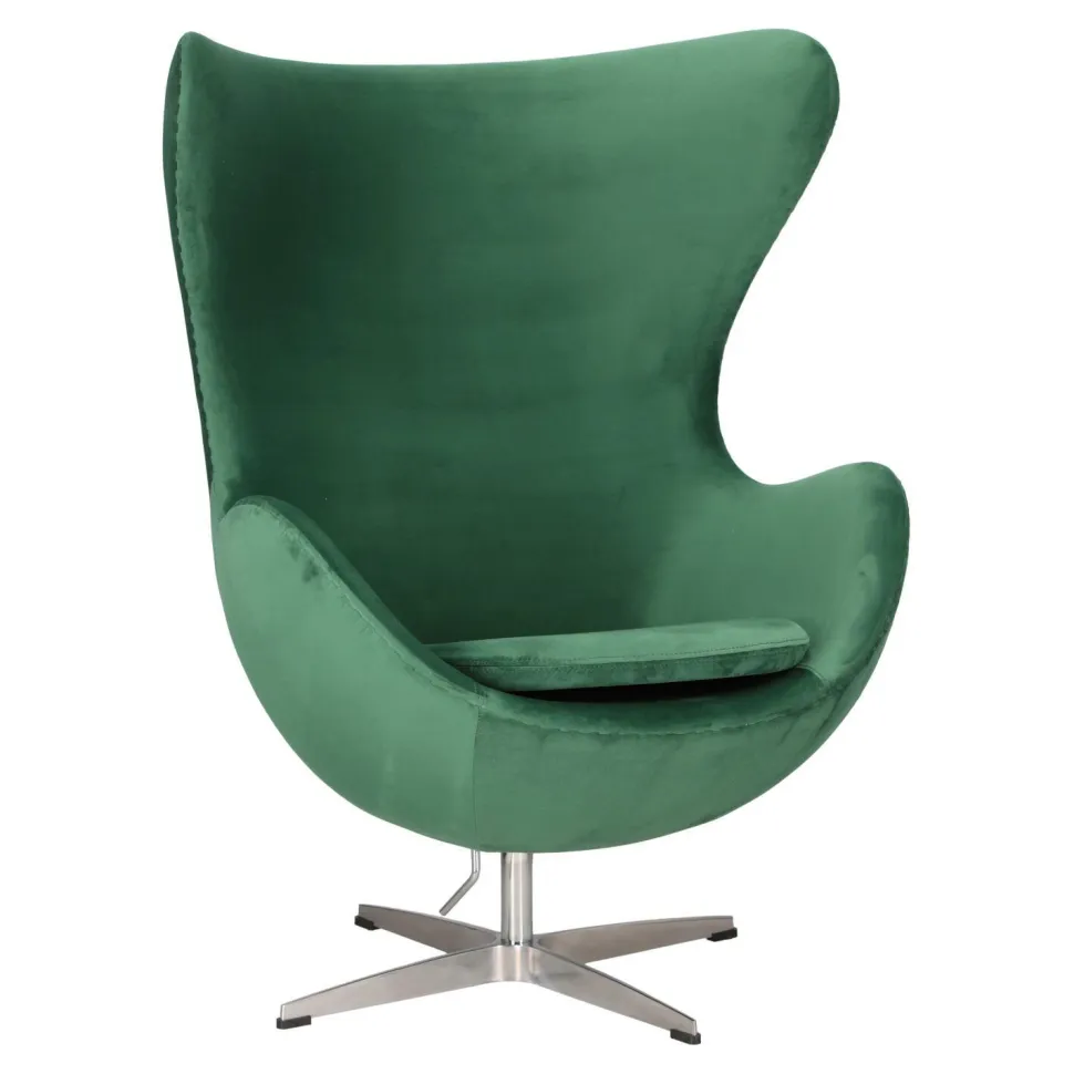 Fotel Jajo Velvet zielone/ srebrna podstawa – unikalny design i wygoda