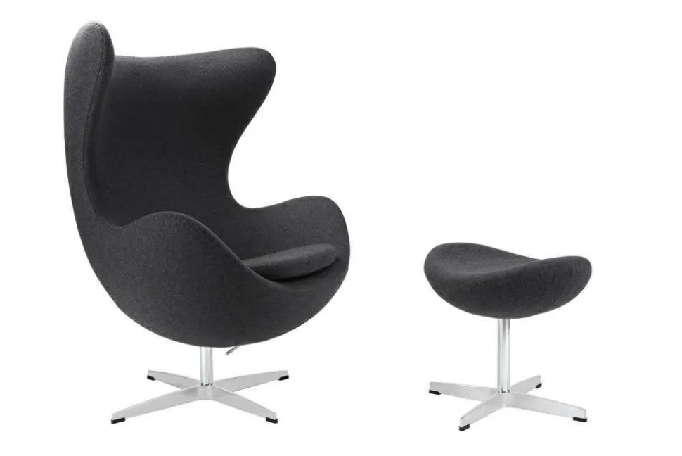 Fotel Egg to kultowy nowoczesny fotel, który pokochali architekci na całym świecie. Fotel wykorzystywany jest w designerskich aranżacjach prywatnych mieszkań, nowoczesnych biur czy stylowych hotelach. Forma fotela Jajo została zainspirowana jednym z najbardziej znanych na świecie modeli Egg. Twórcą fotela jest Arne Jacobson, który stworzył to rozpoznawalne siedzisko na zlecenie hotelu Radisson SAS w Kopenhadze w 1958 roku. Fotel Jajo rewelacyjnie odnajdzie się w przestrzeniach modernistycznych, eklektycznych, glamour czy pop-art. Nowatorska forma sprawia, że fotel możemy dopasować niemal do każdej przestrzeni, aby stał się on niepowtarzalnym dodatkiem i przełamaniem głównego charakteru wnętrza. To przede wszystkim wysokiej klasy, starannie dobrane materiały. Fotel Jajo i podnóżek wykonane zostały z wełny kaszmirowej i chromowanego metalu. Fotel jest obrotowy, posiada także funkcję kołyski.