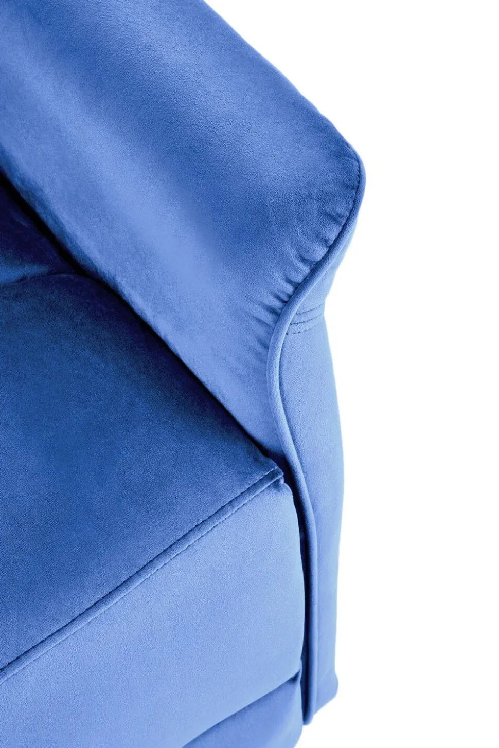 Fotel rozkładany Karlin w granatowym kolorze łączy w sobie elegancję, funkcjonalność oraz komfort, czyniąc go doskonałym wyborem dla każdego stylowego wnętrza. Jego design oparty jest na klasycznych wzorcach, które wzbogacają każdy pokój o odrobinę luksusu. Wykonany z wysokiej jakości materiałów, fotel ten nie tylko wygląda efektownie, ale również jest niezwykle trwały.