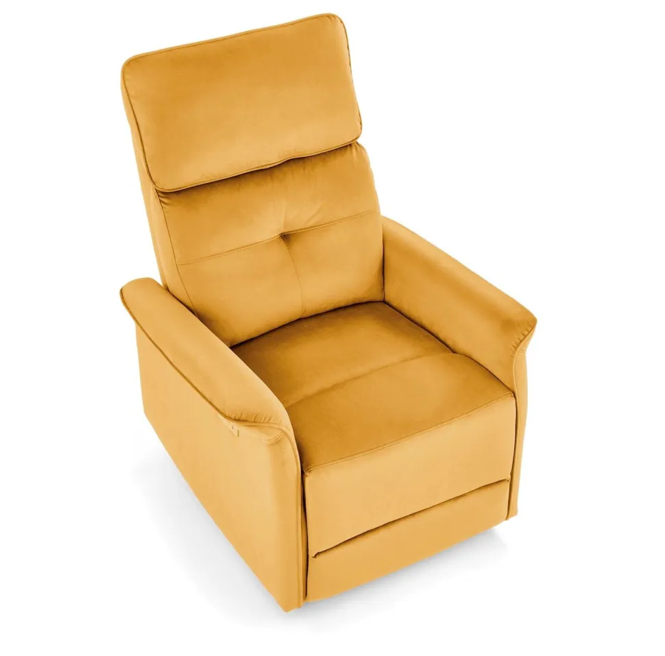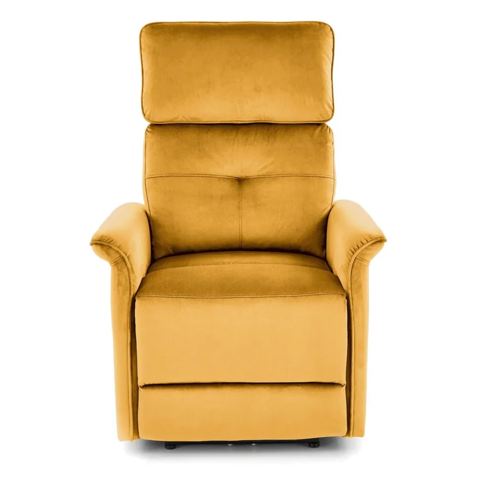 Fotel rozkładany Karlin w kolorze musztardowym to elegancki i funkcjonalny mebel, idealny do wnętrz w stylu tradycyjnym i klasycznym. Wykonany z wysokiej jakości materiałów, łączy w sobie komfort i nowoczesne technologie, co sprawia, że jest doskonałym wyborem dla każdego, kto ceni sobie wygodę i styl.