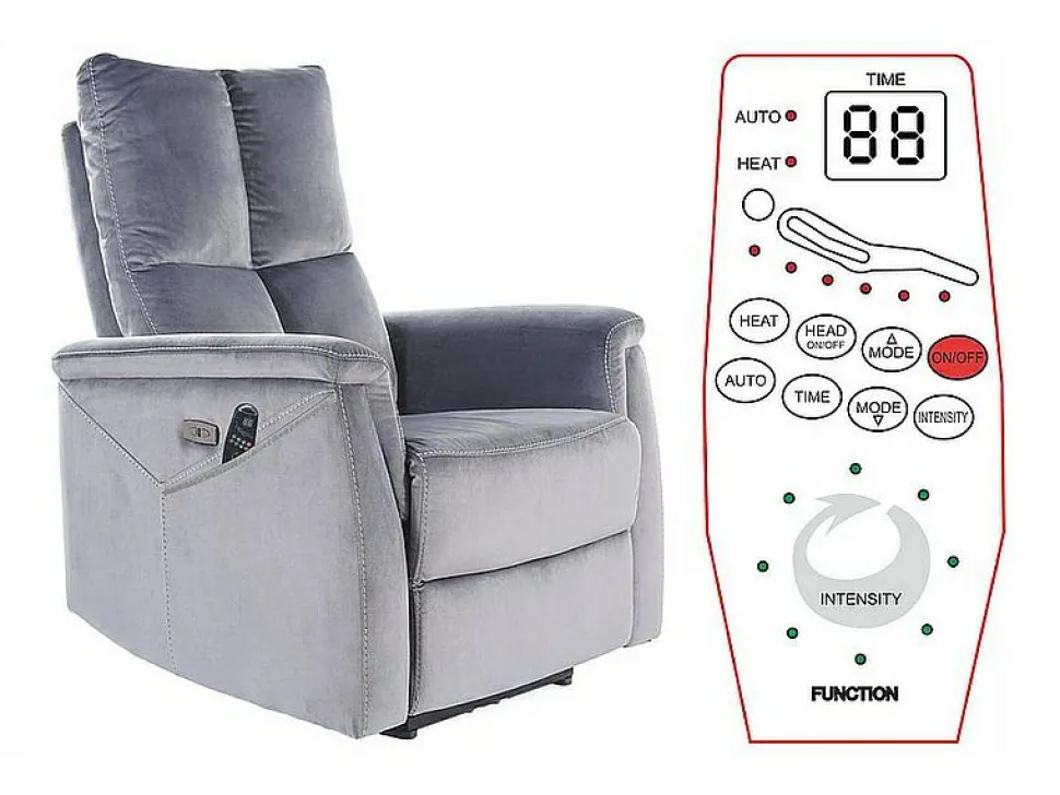 Ten zaawansowany technologicznie fotel wyposażony jest w elektryczny mechanizm rozkładania, który pozwala na dostosowanie pozycji siedzenia do indywidualnych potrzeb. Dzięki funkcji masażu oraz podgrzewania odcinka lędźwiowego, fotel Mars oferuje wyjątkowe doznania relaksacyjne. Sterowanie wszystkimi funkcjami odbywa się za pomocą wygodnego pilota, co umożliwia łatwe i intuicyjne użytkowanie.