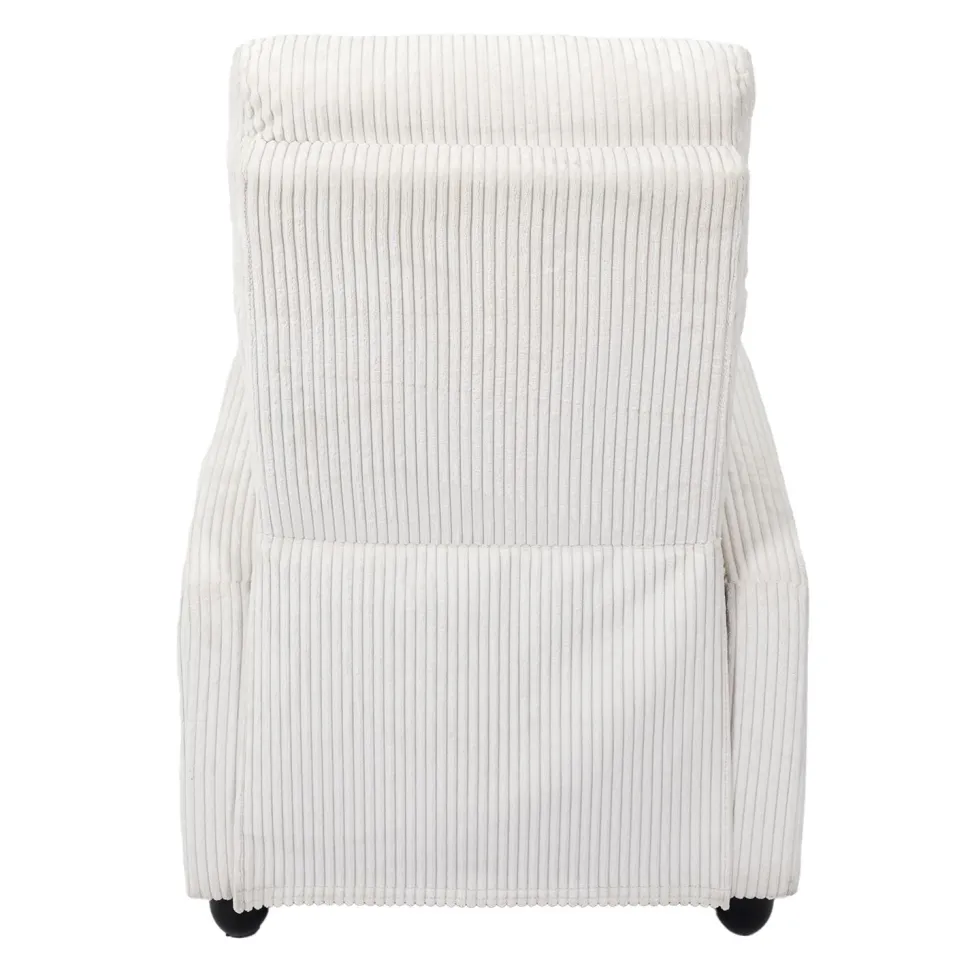 - Wykonany z białego sztruksu, co nadaje mu eleganckiego i nowoczesnego wyglądu.