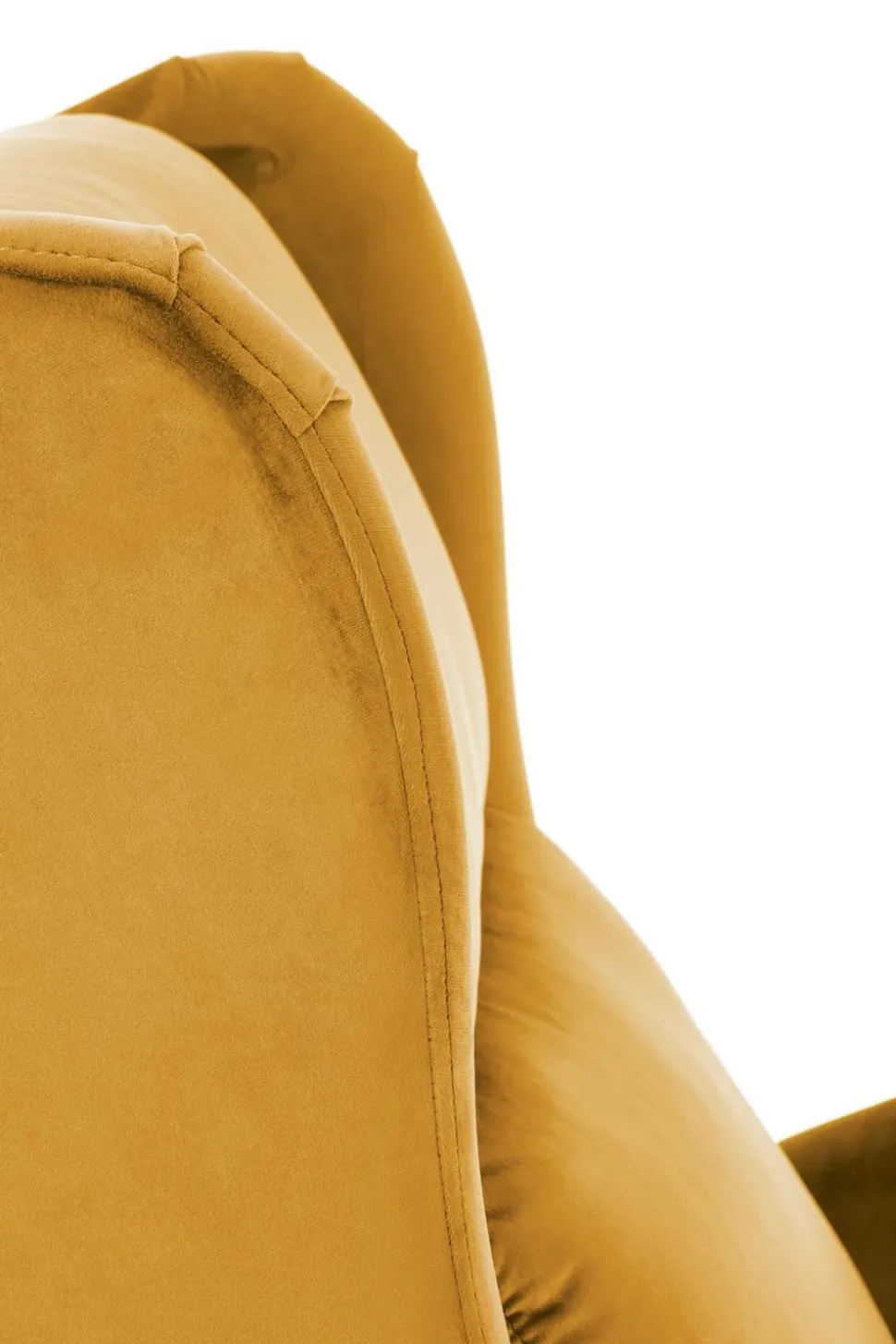 Przekształć swoją przestrzeń życiową dzięki luksusowemu fotelowi Nagu od Intesi. Stylowy mebel ma klasyczny, tradycyjny design z aksamitną tapicerką z tkaniny welwetowej w kolorze musztardowym oraz podstawą w kolorze czarnym. Posiada funkcję rozkładania dla maksymalnego relaksu i jest wyposażony w polipropylenowe nóżki oraz ramę dla dodatkowej trwałości.