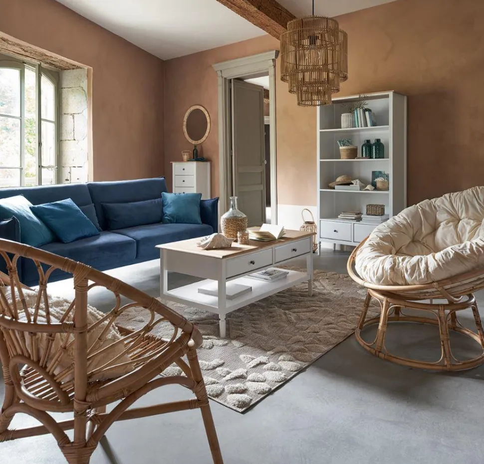 Ten rattanowy fotel o okrągłym kształcie z miękką poduchą na siedzisku to idealny wybór dla miłośników stylu boho.