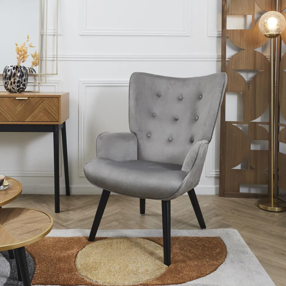 Intesi prezentuje fotel uszak Gulia, który łączy w sobie elegancką estetykę i wygodę użytkowania. Wykonany z miękkiego sztruksu w odcieniu szarości, ten mebel zapewni Ci nie tylko komfort, ale także doda charakteru Twojemu wnętrzu. Z niskim siedziskiem i głębokim oparciem, Gulia jest idealnym miejscem na relaks po ciężkim dniu, czytanie ulubionej książki czy karmienie maluszka. Fotel uszak jest nie tylko praktyczny, ale także stylowy – czarne, drewniane nóżki dodają mu nowoczesnego charakteru, a guziki na oparciu stanowią efektowną ozdobę.