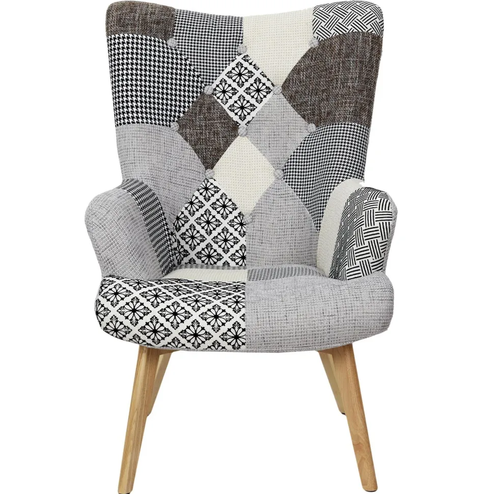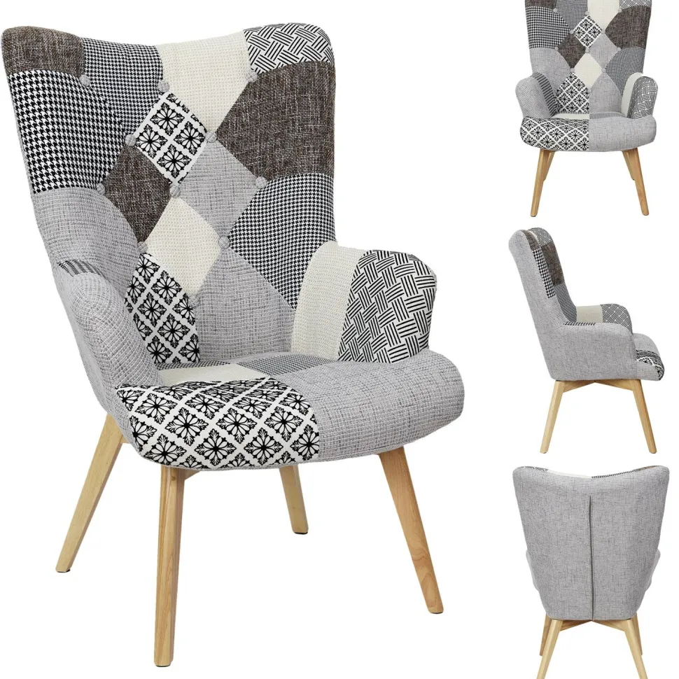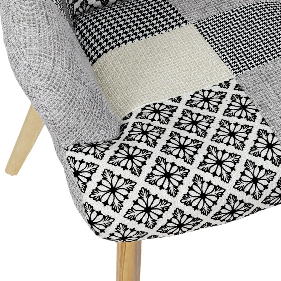 - Szary kolor i patchworkowy design sprawiają, że fotel Helsinki pasuje do większości wnętrz.