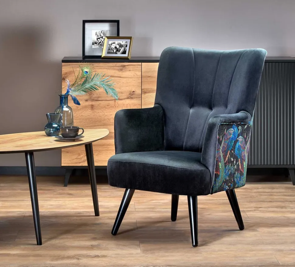- Fotel Gredos to połączenie elegancji i natury, dzięki akcentowi ptaka umieszczonego na bokach fotela.