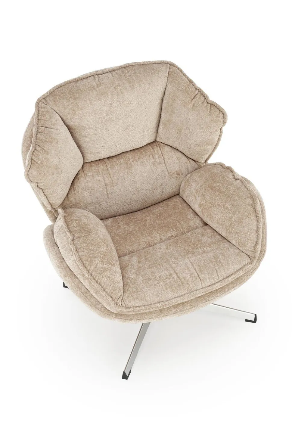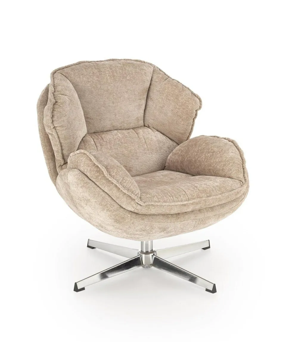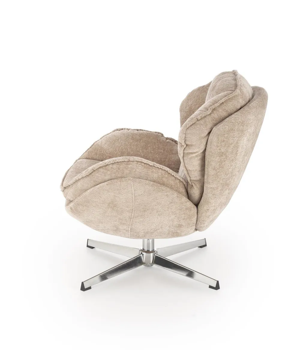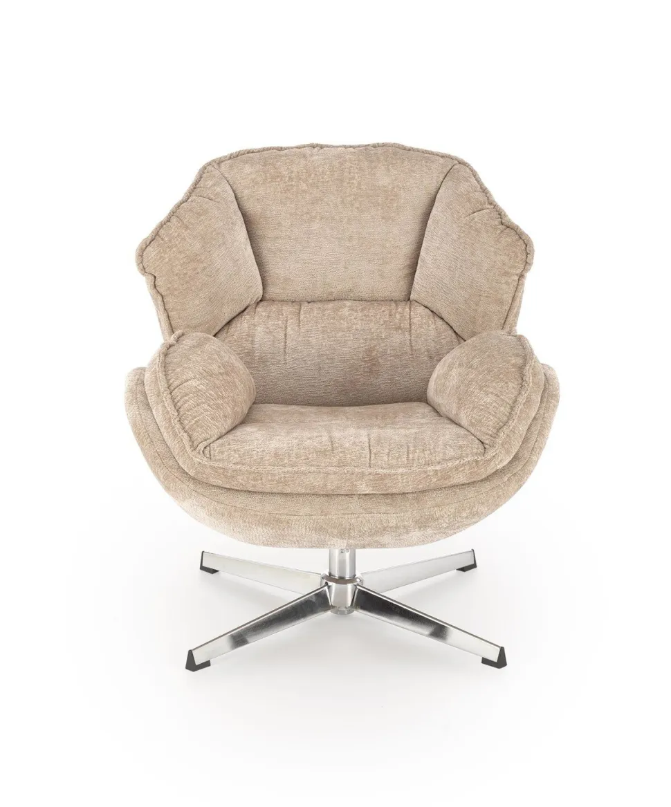- Beżowy odcień tkaniny jest uniwersalny, co ułatwia dopasowanie fotela do różnych kolorów i stylów wnętrz, wprowadzając ciepło i przytulność do pomieszczenia
