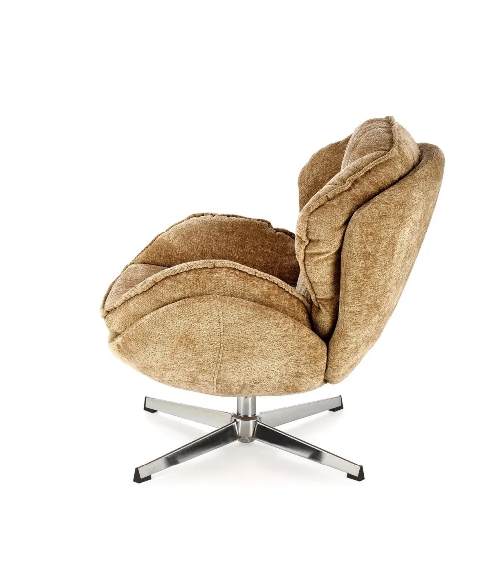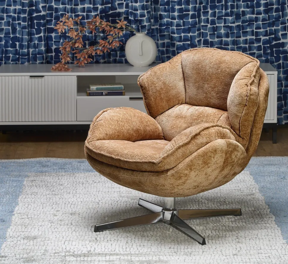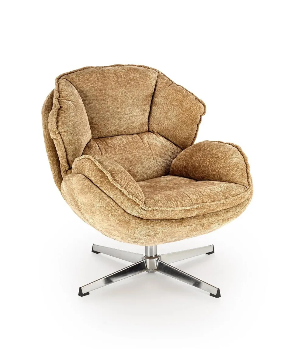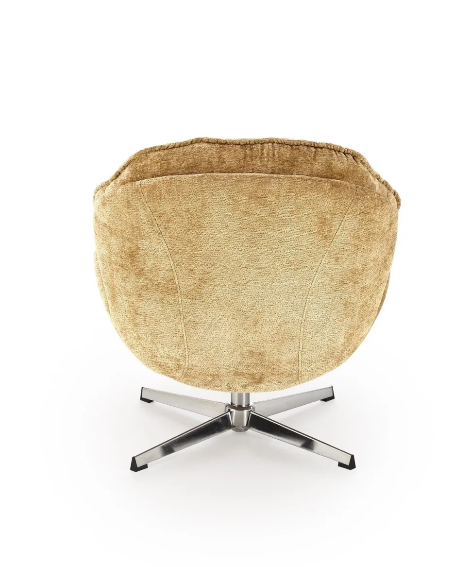 - Musztardowy kolor fotela dodaje wnętrzu energii i charakteru, stając się wyjątkowym akcentem w aranżacji, idealnym do nowoczesnych i eklektycznych przestrzeni