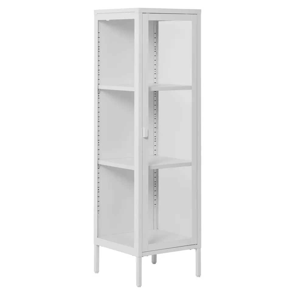 Prezentujemy Państwu gablotę Brisbane, która łączy w sobie elegancję i funkcjonalność. Wykonana z trwałego i wytrzymałego materiału, jakim jest stal, pokryta jest białym lakierem, który dodaje jej lekkości i świeżości. Dopełnieniem całości jest front z gładkiego szkła, który podkreśla nowoczesny design mebla. Gablota Brisbane to nie tylko atrakcyjny wygląd, ale również praktyczne rozwiązania. Wyposażona jest w półki, które pomieszczą wiele drobiazgów. Maksymalne obciążenie każdej z półek wynosi aż 15 kg, dzięki czemu bez problemu pomieścimy na nich nawet cięższe przedmioty. Wysokość gabloty wynosi 140 cm, a szerokość 40 cm, co sprawia, że mebel ten idealnie wpasuje się nawet w niewielkie pomieszczenia.