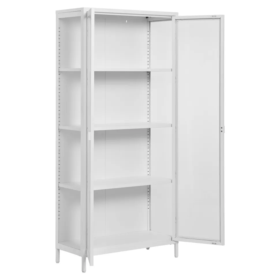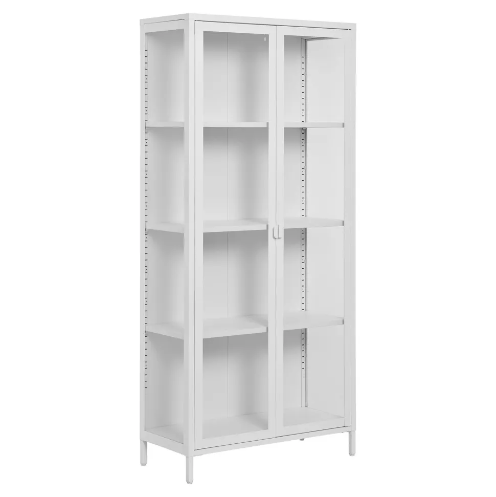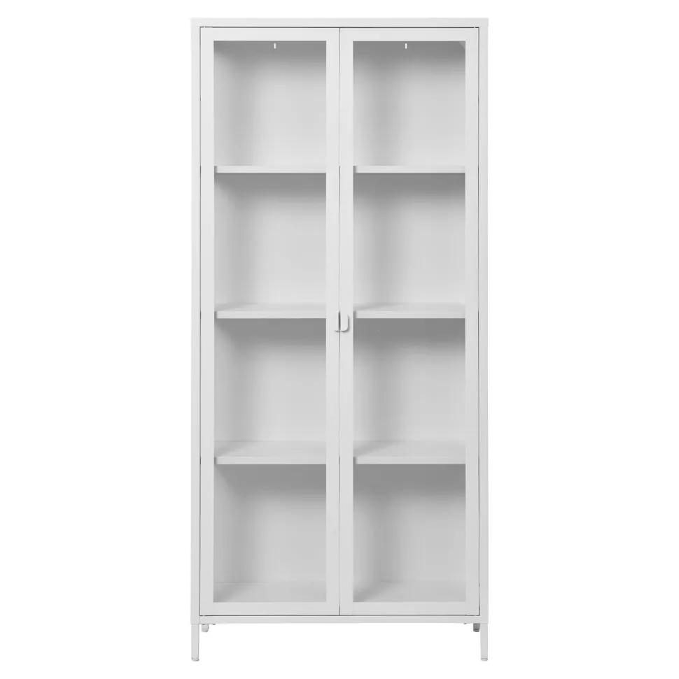 Wysoka gablota Brisbane wykonana jest z wytrzymałego metalu oraz szkła, co gwarantuje jej trwałość i stabilność. Szklane drzwi umożliwiają prezentację przechowywanych przedmiotów, a stalowa konstrukcja zapewnia solidność mebla. Gablota Brisbane jest wyposażona w cztery nogi, które zapewniają jej stabilność, nawet pod dużym obciążeniem.