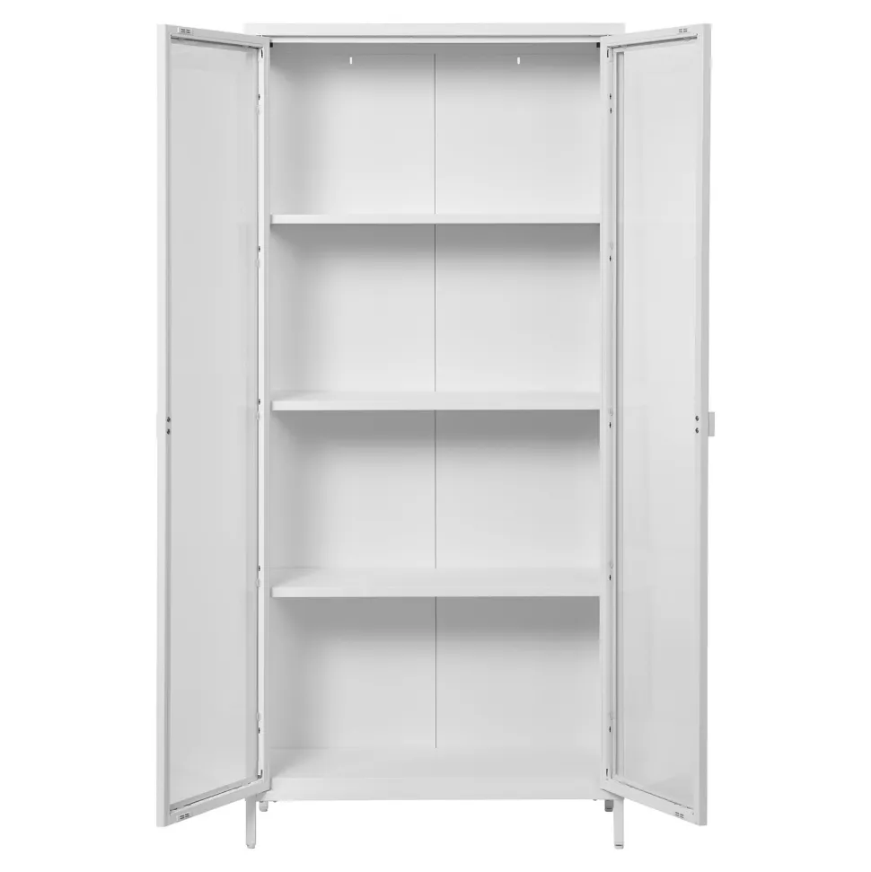 Prezentujemy Państwu wysoką gablotę Brisbane, która jest połączeniem prostoty, elegancji i funkcjonalności. Jej biała stalowa konstrukcja w połączeniu ze szklanymi drzwiami tworzy nowoczesny i loftowy design. Gablota Brisbane to idealne rozwiązanie dla osób, które cenią sobie minimalistyczny styl i praktyczne rozwiązania. Dzięki trzem półkom, gablota umożliwia przechowywanie różnego rodzaju przedmiotów, od książek, przez bibeloty, po dokumenty.