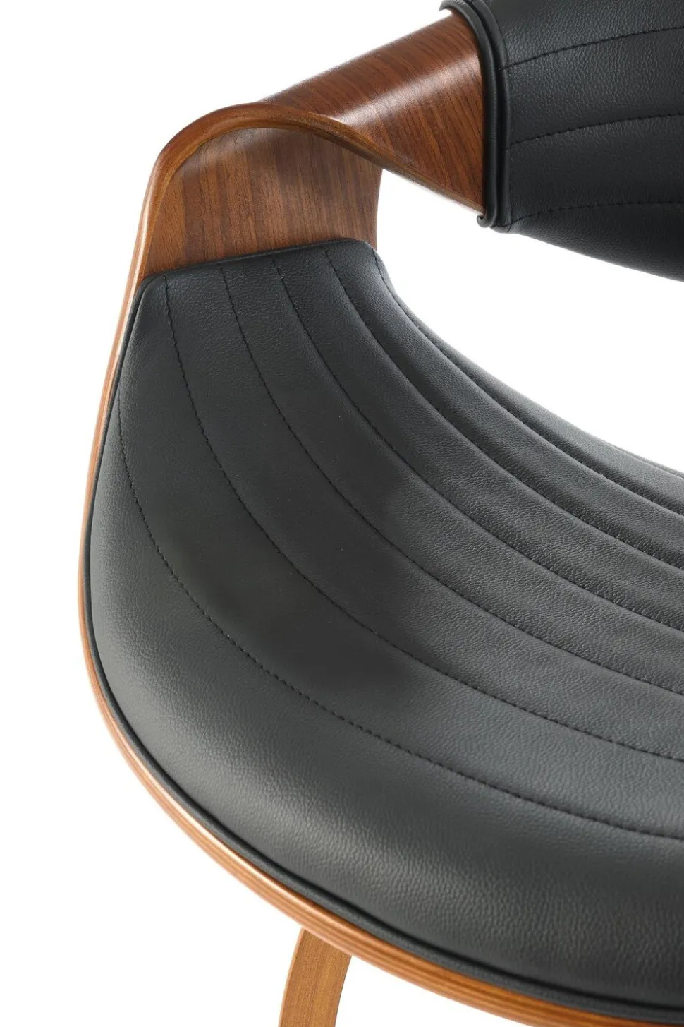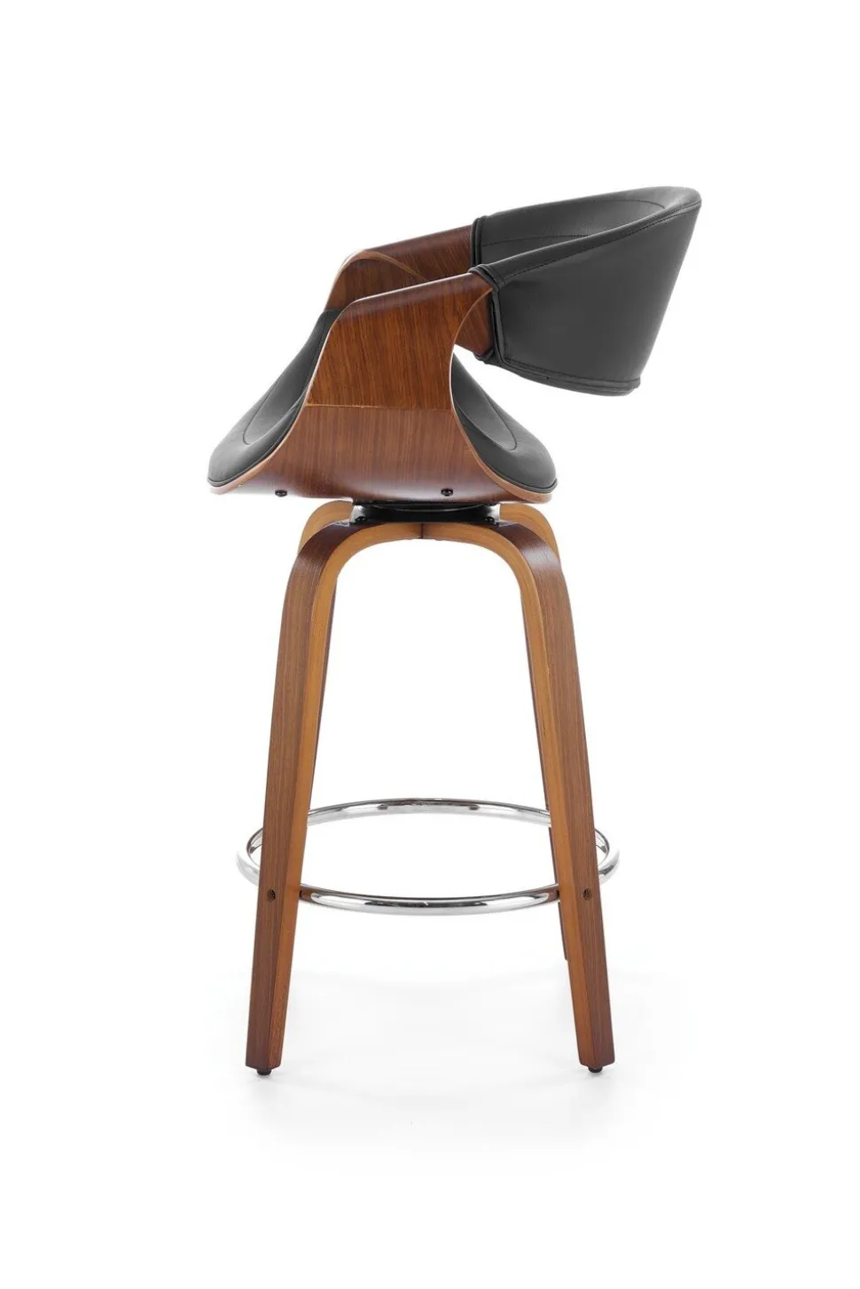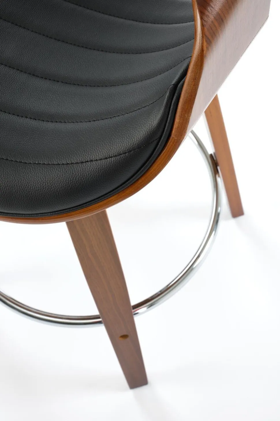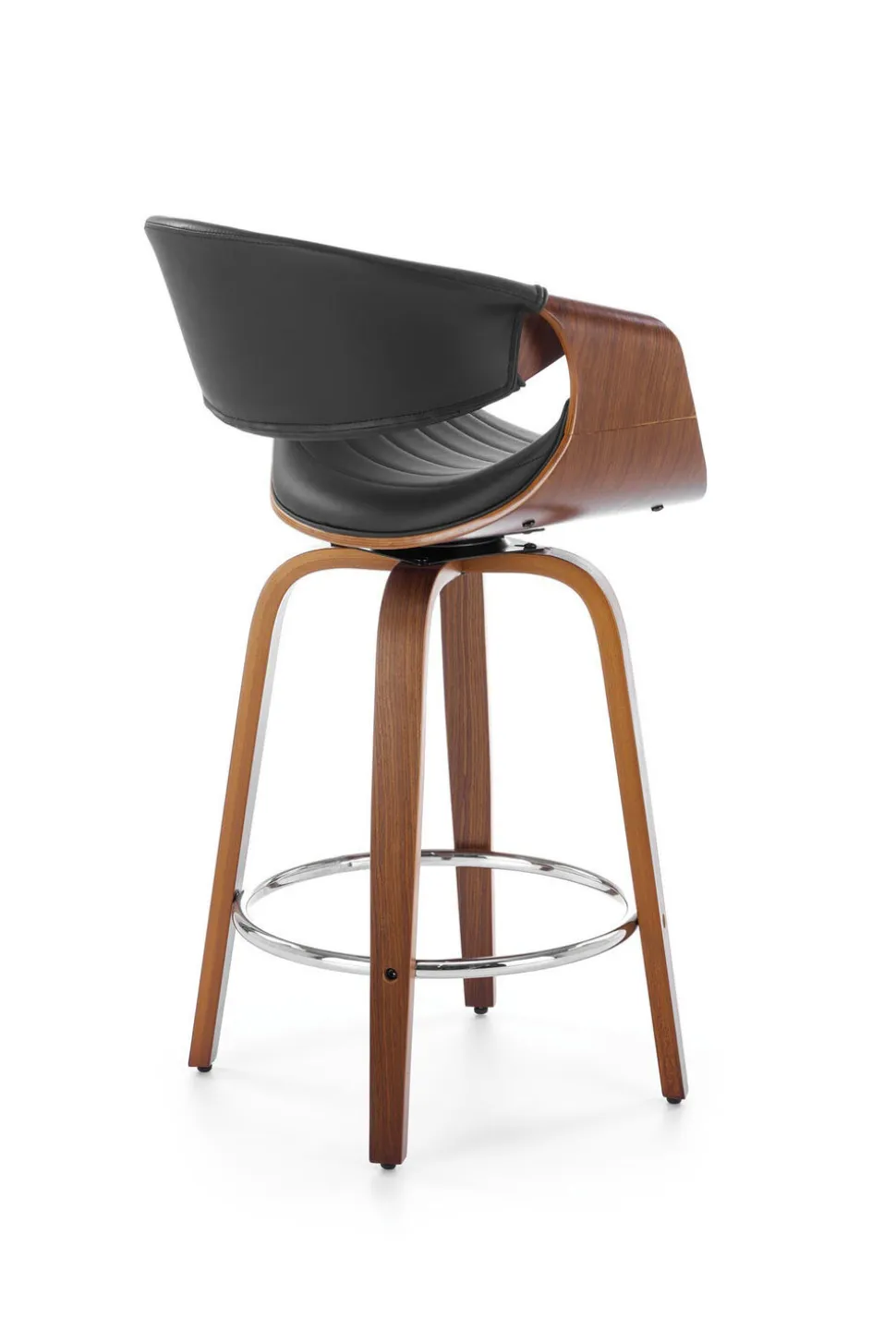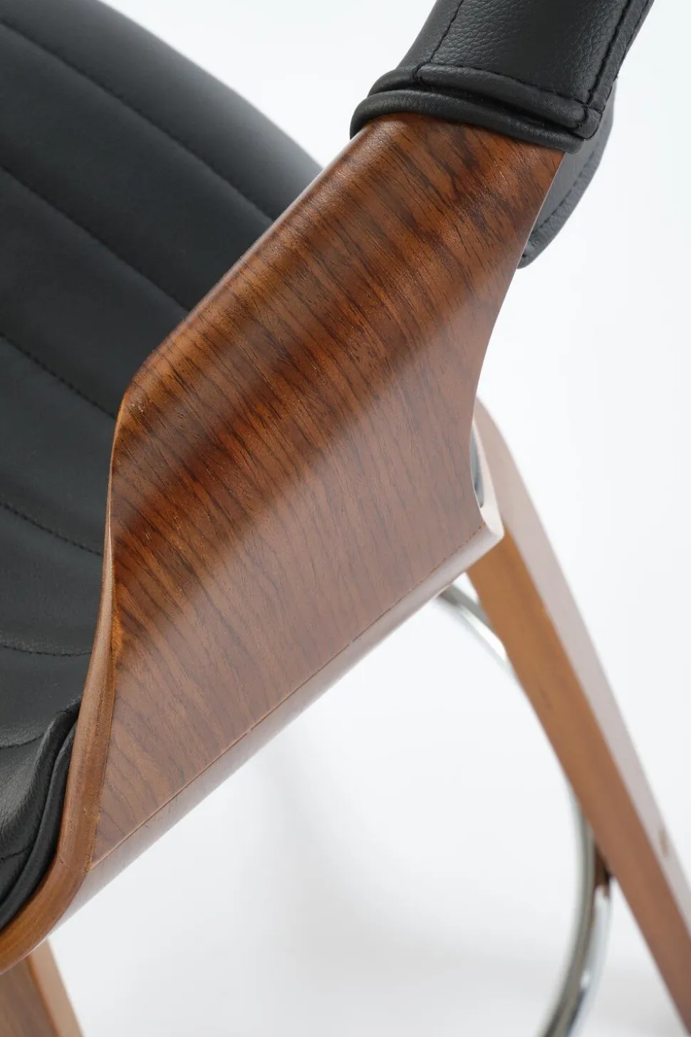 Hoker Analis PU to doskonałe połączenie elegancji i funkcjonalności, które wkomponuje się idealnie w każde nowoczesne wnętrze. Jego siedzisko wykonane jest z wysokiej jakości eco skóry w kolorze czarnym, co nadaje mu nowoczesny wygląd, a jednocześnie zapewnia wyjątkowy komfort. Podstawa hokera z giętej sklejki w kolorze orzechowym dodaje ciepła i naturalnego uroku, tworząc harmonijną całość. Cztery solidne nogi hokera wyposażone są w zabezpieczenia, które chronią podłogę przed zarysowaniami, co czyni go praktycznym wyborem do każdej kuchni lub restauracji.