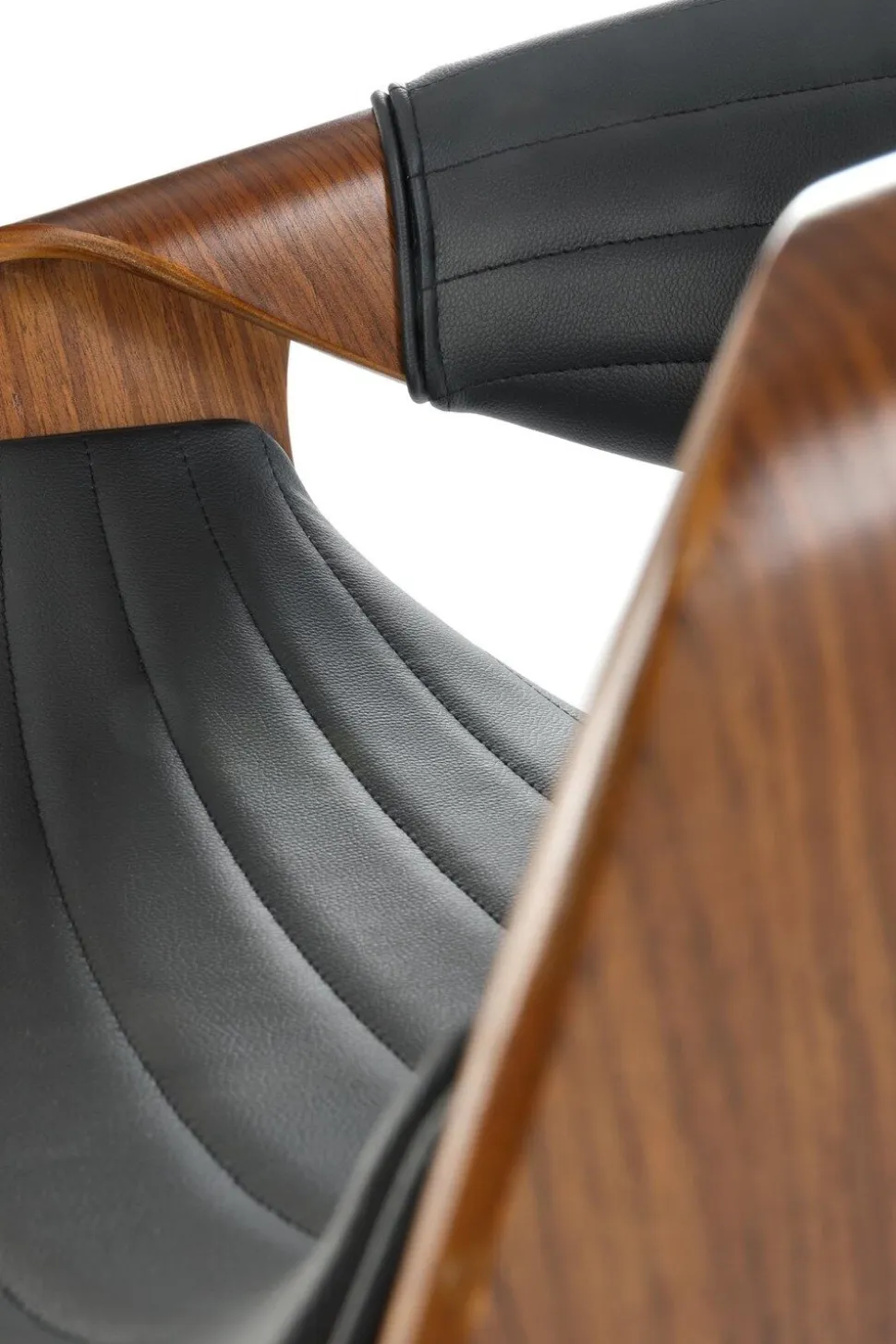 - Siedzisko z eco skóry w kolorze czarnym zapewnia komfort i nowoczesny wygląd.