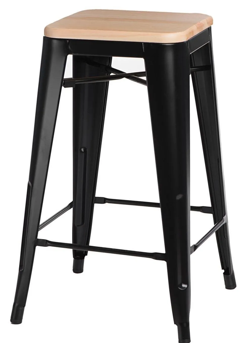 Hoker barowy Niort 65 cm to piękny, przyciągający wzrok mebel, który dodaje charakteru każdej przestrzeni. Łącząc lakierowany metal i siedzisko z naturalnego drewna, ten stołek barowy stanowi wyjątkowe połączenie elegancji i trwałości. Siedzisko wykonane jest z naturalnego drewna sosnowego z gładkim lakierowanym wykończeniem.