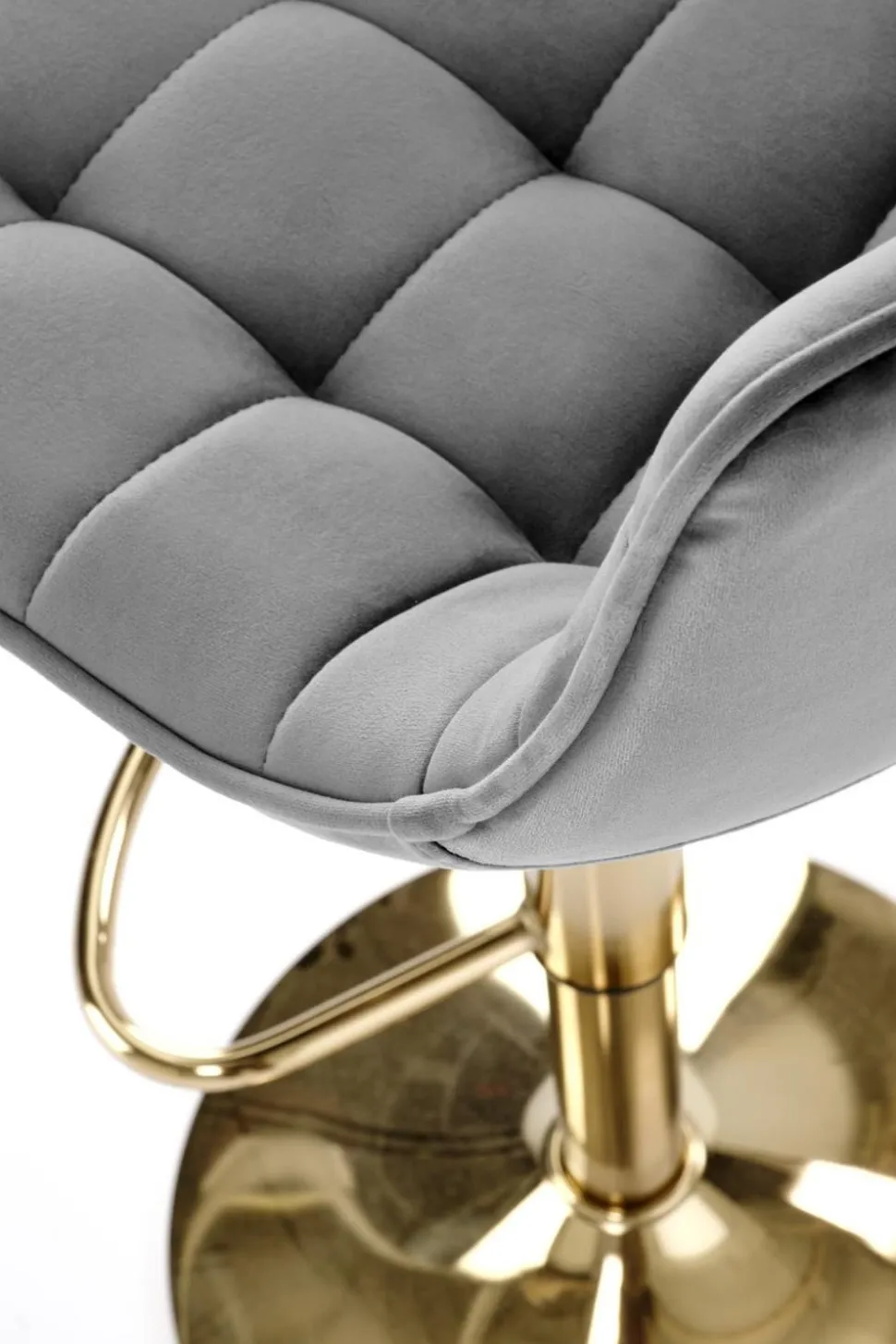 Wyjątkowy komfort i maksymalna funkcjonalność Aksamitny stołek barowy Plaid od Intesi to idealne połączenie stylu i wygody. Jego nowoczesny design i regulowana wysokość sprawiają, że doskonale pasuje do każdego współczesnego wnętrza, zarówno w domu, jak i w biurze.Złota podstawa ze stali chromowanej dodaje elegancji i luksusowego akcentu. To nie tylko funkcjonalne, ale również designerskie rozwiązanie, które przyciąga uwagę i nadaje pomieszczeniu wyjątkowego charakteru. Obrotowa podstawa stołka pozwala na swobodne obracanie się wokół własnej osi, co jest niezwykle praktyczne w sytuacjach, gdy chcemy porozmawiać z naszymi gośćmi lub sięgnąć po coś z bliska. Nie musisz już wstawać i przesuwać cały stołek – teraz możesz po prostu obrócić się w wygodnym miejscu.Miękkie siedzisko z aksamitnej tkaniny zapewnia maksymalny komfort. Możesz zatopić się w miękkim i przyjemnym materiale, który jest przyjemny w dotyku i wygląda bardzo elegancko. Dodatkowo, siedzisko jest obracane, co ułatwia interakcje z gośćmi i sprawia, że czujesz się jeszcze bardziej komfortowo.Hoker Plaid to nie tylko stylowy dodatek do Twojego wnętrza, ale również funkcjonalne rozwiązanie. Regulowana wysokość stołka pozwala dostosować go do optymalnej pozycji podczas pracy lub spożywania posiłków. Niezależnie od tego, czy korzystasz z niego przy wysokim blacie kuchennym, czy przy barze, zawsze będziesz miał idealną wysokość. O czym warto wiedzieć przed zakupem? Stylowy i nowoczesny design Regulowany stołek barowy na złotej podstawie ze stali chromowanej Doskonale pasuje do współczesnego domu lub biura