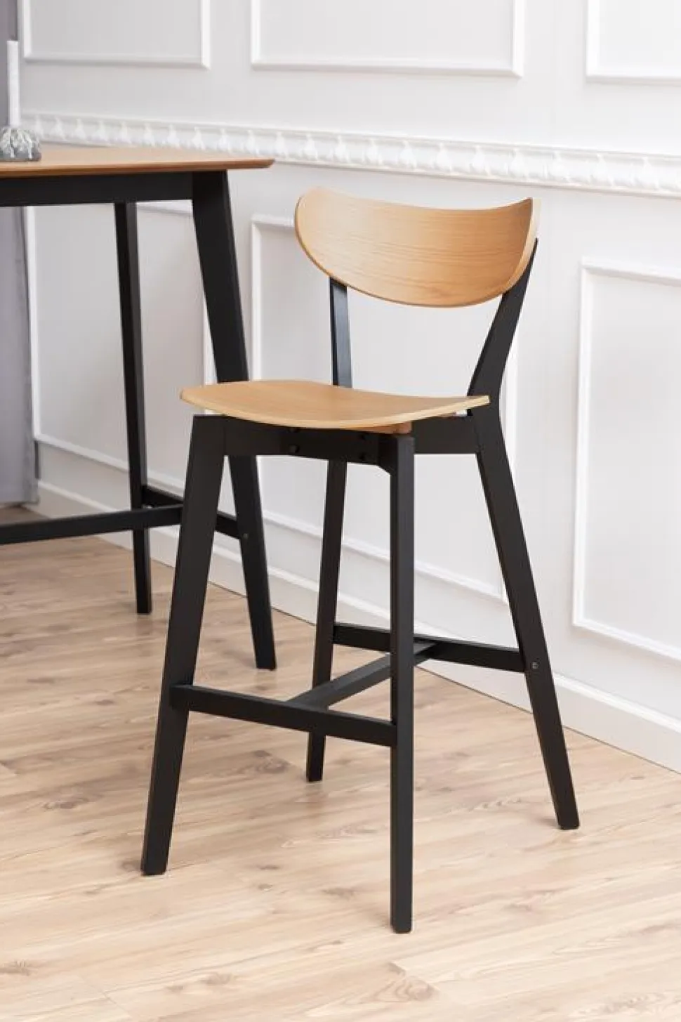 Przedstawiamy Ci hoker Roxby – mebel, który wnosi świeżą energię i charakter do każdego wnętrza. To połączenie stylu retro z nowoczesną estetyką, które sprawia, że ten stołek barowy wyróżnia się spośród innych. Mebel występuje w dwóch opcjach kolorystycznych, z siedziskiem w naturalnym lub czarnym kolorze. Lakierowany fornir dębowy tworzy elegancką powierzchnię siedziska, podkreślając naturalne piękno drewna. Z kolei lakierowana na czarno drewniana podstawa tworzy odważny kontrast i dodaje stołkowi wyrazistości.