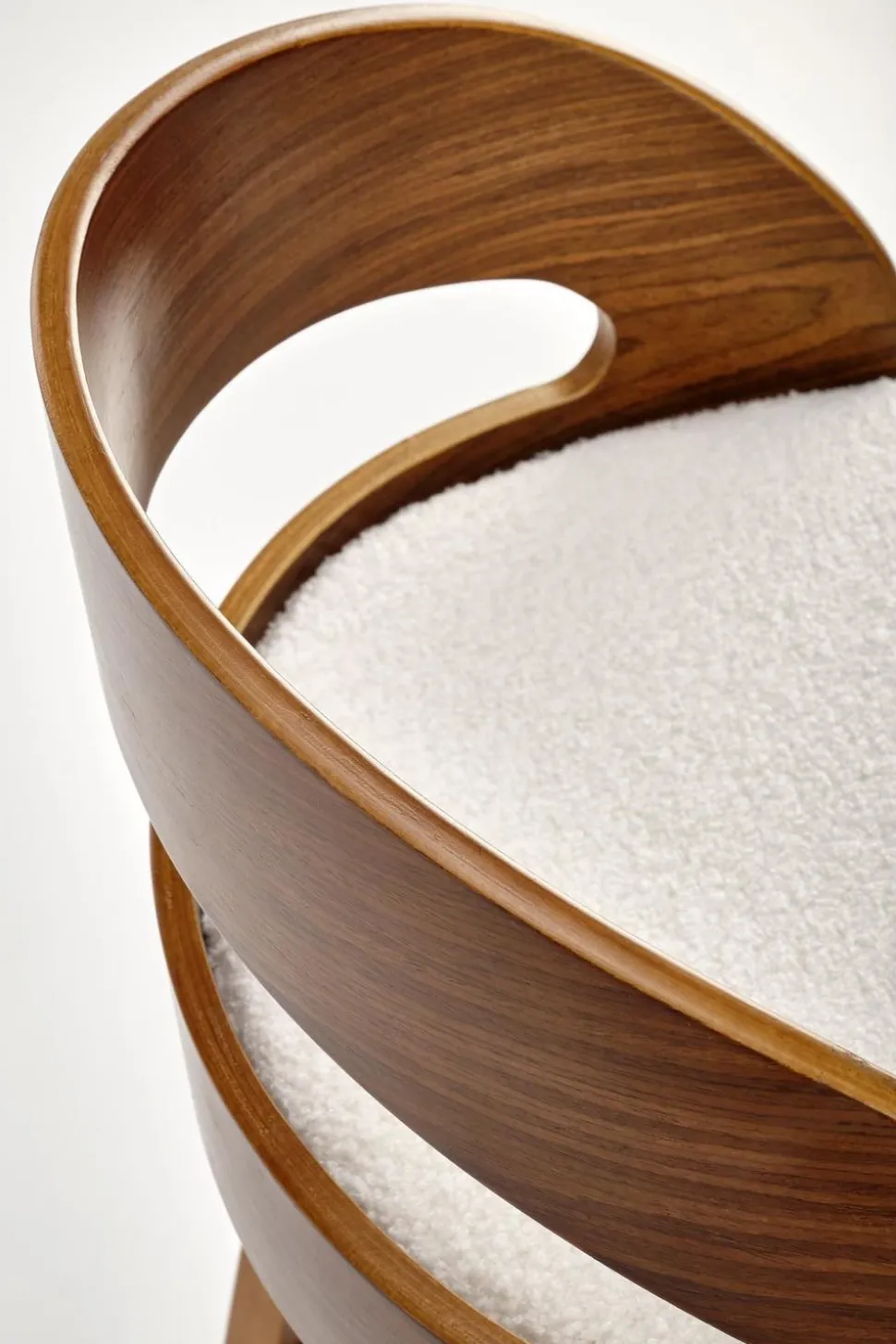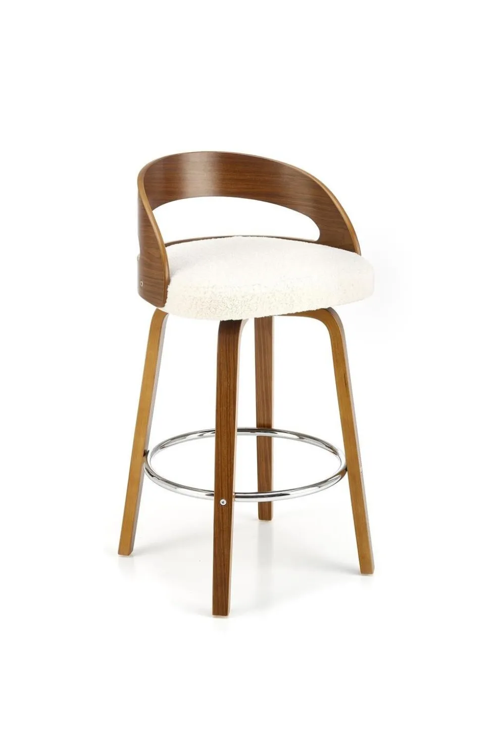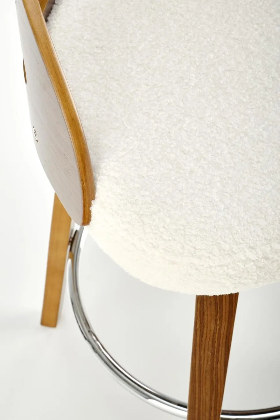 Hoker Ruby kremowy/ orzech Hoker Ruby to świetny wybór dla każdego, kto szuka stylowego i wygodnego mebla. Siedzisko jest pokryte tkaninąboucle przypominające baranka, przez co jest bardzomiękkie,podstawa z kolei jest ze sklejki giętej w kolorze orzecha- czysta klasyka ielegancka. Połączenie tych dwóch materiałów tworzyidealną kompozycję w stylu industrialnym. Stołek barowy dziękiwysokości 84 cmjest idealny rozmiarem do każdego pomieszczenia. A fakt, że ma zarówno oparcie, jak i podłokietniki, czyni go jeszcze bardziej wygodnym.Materiały użyte do produkcji tego hokera są najwyższej jakości, co gwarantuje trwałość i estetyczny wygląd przez wiele lat.Nóżki, wykończone w kolorze orzecha, podkreślają elegancki charakter mebla i dodają mu odrobinę powagi.Hoker zapewnia wygodne użytkowanie, zwłaszcza w przypadku jadalni przy wyspie lub w luksusowych przestrzeniach hotelarskich.Ten modny hoker doskonale wpisuje się w trendy wnętrzarskie, a jegowyjątkowy design przyciąga wzrok i staje się centralnym elementem dekoracyjnym.Jest to nie tylko funkcjonalny mebel, ale także wyrazisty element wystroju, który doda charakteru i uroku pomieszczeniu. Co warto wiedzieć przed zakupem? Hoker Ruby to elegancki mebel, który wnosi elegancję do wnętrza. Wykonany z najwyższej jakości materiałów, takich jak tkaninaboucle, gwarantuje trwałość i estetyczny wygląd na długie lata. Doskonały do jadalni przy wyspie lub w luksusowych przestrzeniach hotelarskich, ten hoker będzie funkcjonalnym i stylowym dodatkiem do wnętrza.