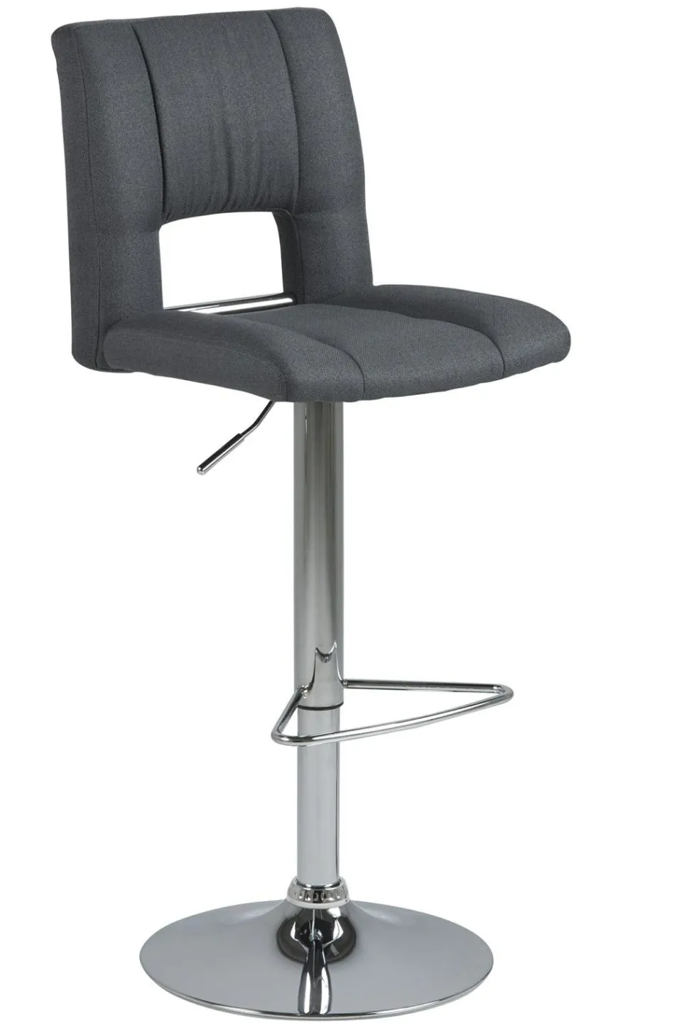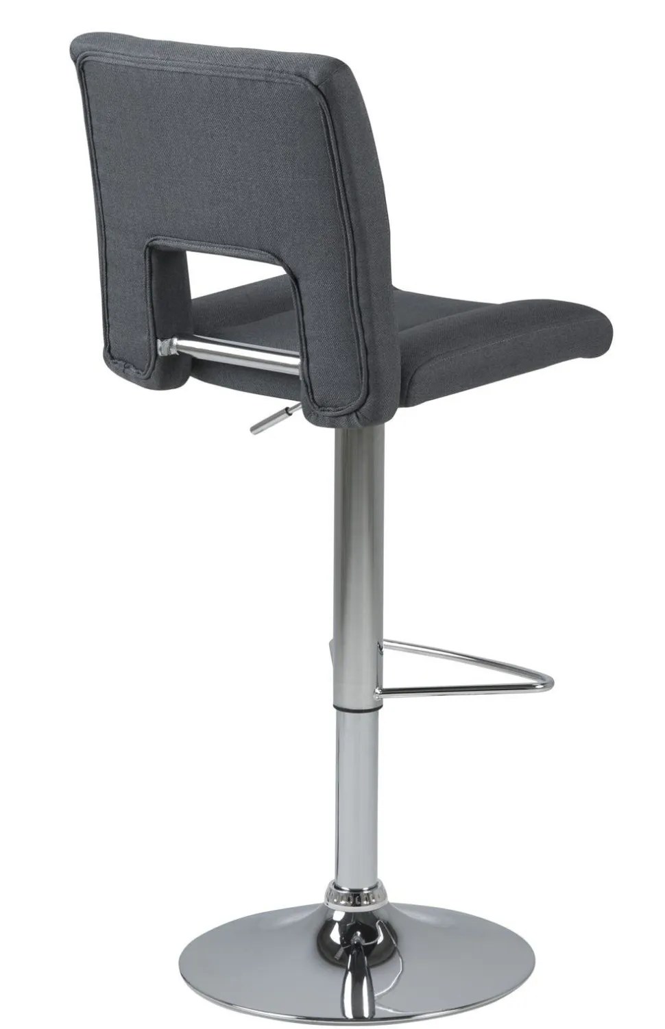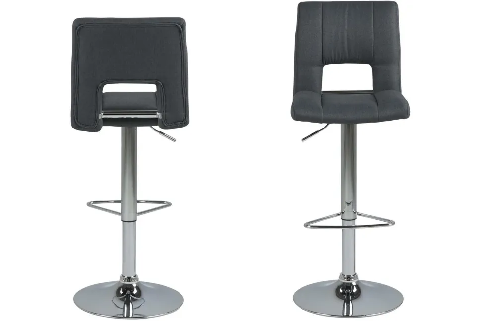 Stołek barowy z oparciem to ostatnio najchętniej wybierany mebel do wyspy kuchennej. Nic dziwnego, hokery poza swoją funkcjonalnością dodają wnętrzom dobrego stylu i sprawiają, że pomieszczenie ma nowoczesny charakter. Hoker Sylvia to wiele korzyści w jednym produkcie. Jego siedzisko z wysokim oparciem wykonane zostało z pianki poliuretanowej, która zapewnia sprężystość i zapobiega odkształceniom. Powierzchnia wykończona została tapicerką z tkaniny Corsica fabric dark grey 20. Podstawę stanowi długa, smukła noga ze szczotkowanego metalu w kolorze chromu. Zakończona jest ona płaskim talerzem zapewniającym stabilność. Ogromną zaletą jest możliwość regulacji wysokości siedziska za pomocą automatycznego systemu. Poza tym hoker posiada też podparcie dla nóg, które poprawia komfort siedzenia przy wysokim blacie.