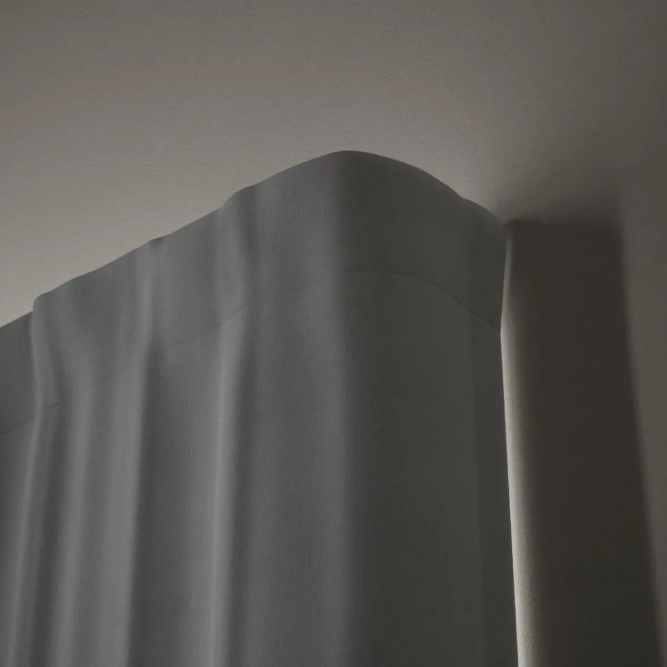 Jego zakrzywiona konstrukcja umożliwia wygodne zamontowanie zasłon lub firanek, a następnie ich rozciągnięcie po drążku karnisza, co zapewnia całkowitą izolację od promieni słonecznych. Dzięki solidnej budowie, karnisz jest w stanie utrzymać zasłony o różnej wadze, od lekkich po średnie, co sprawia, że jest uniwersalnym rozwiązaniem do każdego pomieszczenia. Nowoczesny karnisz Twilight sprawdzi się w pomieszczeniach minimalistycznych, nowoczesnych jak i również w salonie w stylu skandynawskim. Karnisz całkowicie zasłonięty przez tkaninę zasłon i firan nie jest praktycznie widoczny.