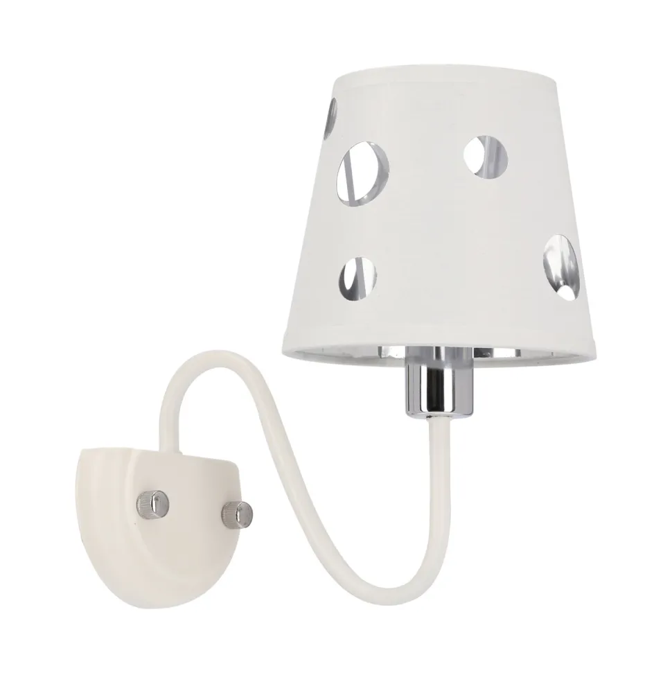 Rodzina klasycznych metalowych lamp z tkanymi abażurami występująca w dwóch wersjach kolorystycznych. Lekkości wzorniczej lampom nadaja nieregularne otwory wycięte w kloszach. Kinkiet w kolorze białym z jednym punktem świetlnym. Żarówka nie jest dołączana dla produktów z zewnętrznym źródłem światła.