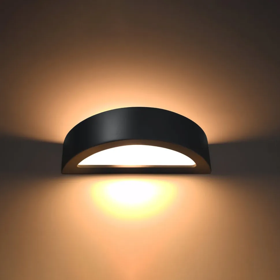Kinkiet Atena zrobiony został w formie rozciętego na pół cylindra. Kształt jego jest więc oparty na półkolu. Geometryczna forma zakończona jest mlecznym tworzywem przez co światło z żarówki rozprowadzone będzie równomiernie i nastrojowo oświetli przestrzeń wokół ściany. Dzięki prostemu nowoczesnemu stylowi lampa pasować będzie zarówno do stylu domowego, skandynawskiego czy nawet glamour.