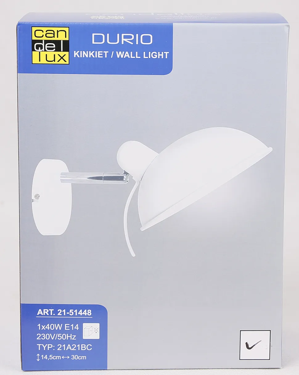 Kinkiet Durio 1x40W E14 biały – funkcjonalność i nowoczesny styl