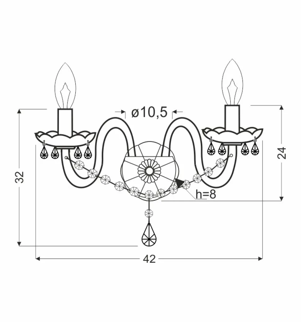 - Kinkiet jest kompatybilny z żarówkami o mocy do 40W i oprawą E14