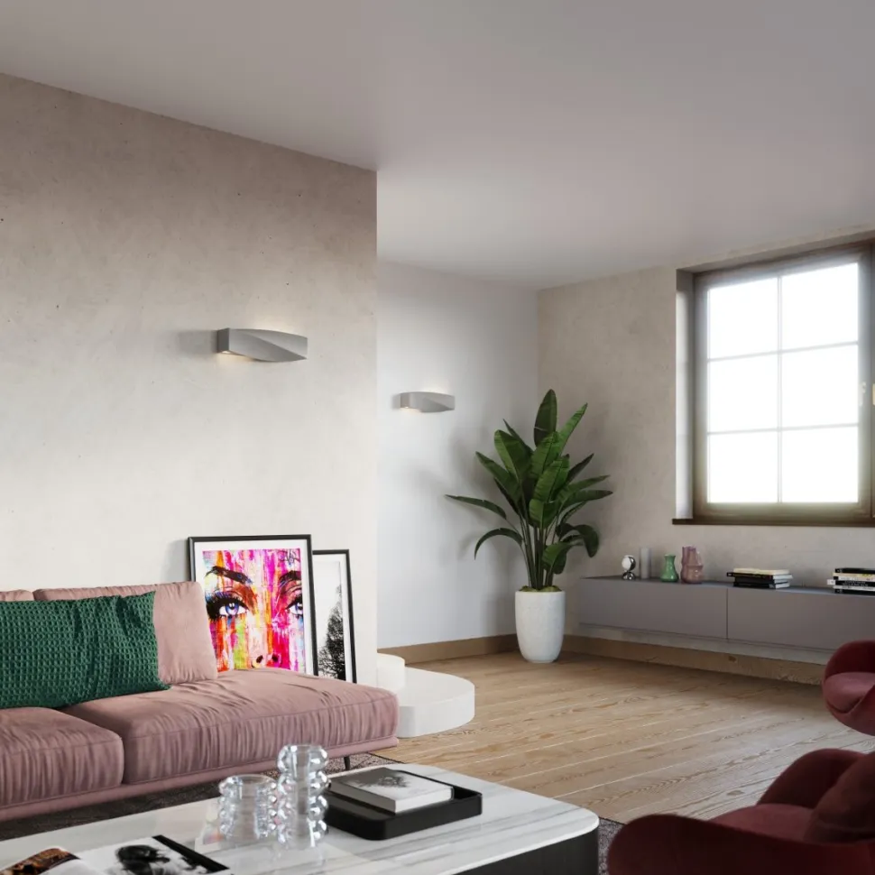Kinkiet Sigma zrobiony został w formie prostopadłościanu wygiętego w taki sposób, że jego krawędź staje się falista. Jego kształt jest więcbardzo prosty, ale zdobnyi zapewnia ciekawy dodatek wnętrza. Kinkiet emitował będzie światło w górę i dół dzięki estetycznie schowanej w środku obudowy lampie, zakończonej mlecznym tworzywem. Dzięki tej półprzezroczystej technologiiświatło rozchodzić się będzie równomiernie i przyjemnie dla oka. Dzięki swojemu alternatywnemu wyglądowi pasować będzie do wielu nowoczesnych wnętrz, ale także loftowych przestrzeni czy nawet do domowego charakteru.
