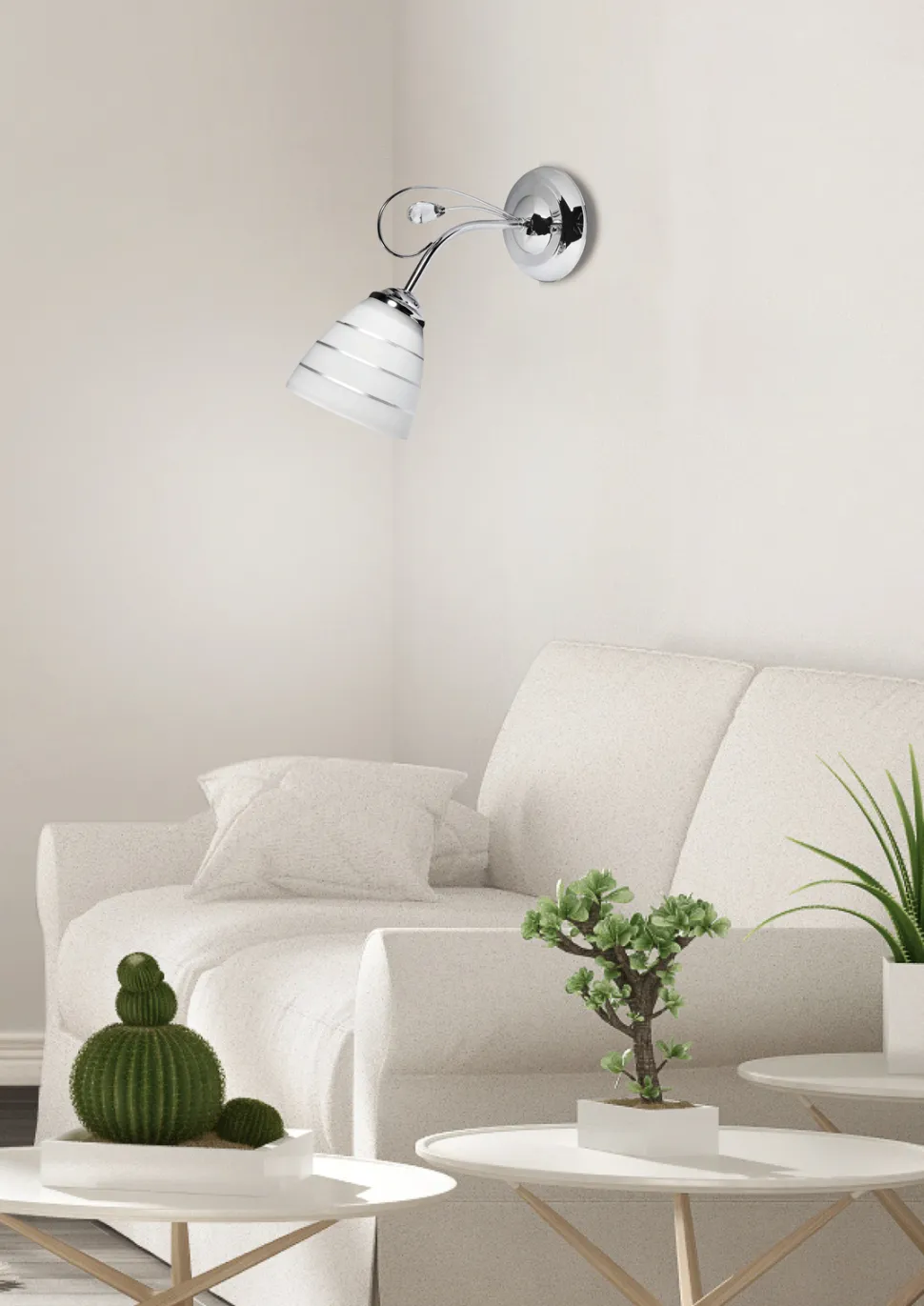 Kinkiet w kolorze białym i chromie – idealny do różnych pomieszczeń