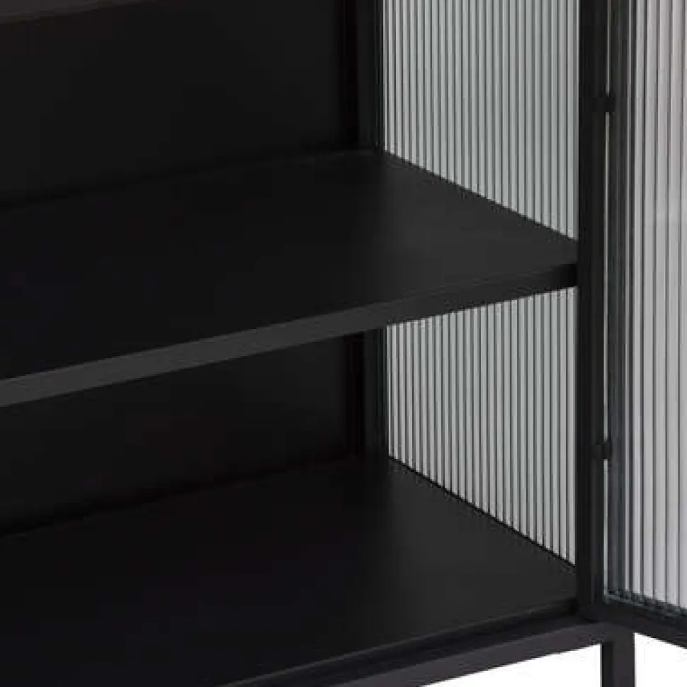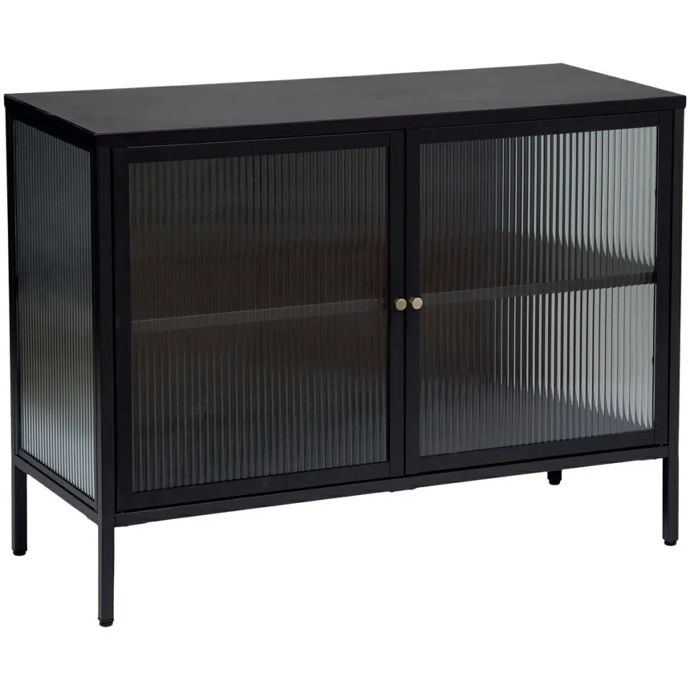 Materiał frontu to eleganckie szkło, które dodaje komodzie luksusowego wyglądu. Nie tylko będzie ono przyciągać uwagę Twoich gości, ale także ochroni przechowywane przedmioty przed kurzem i zabrudzeniami. Materiał konstrukcji to solidny metal, który zapewnia trwałość i stabilność komody. Dzięki temu możesz być pewien, że Twój nowy mebel będzie służył Ci przez wiele lat. Ta komoda ma wiele korzyści, które sprawią, że pokochasz ją jeszcze bardziej.Dzięki swojemu minimalistycznemu designowi, idealnie wpasuje się w każde wnętrze, dodając mu nowoczesnego i eleganckiego charakteru. Dzięki jednej półce, będziesz mieć wszystkie swoje ulubione przedmioty pod ręką, bez konieczności szukania ich w różnych miejscach.