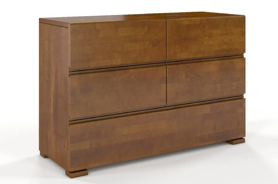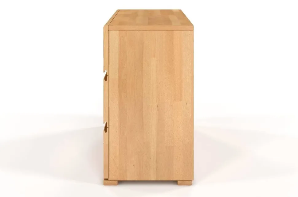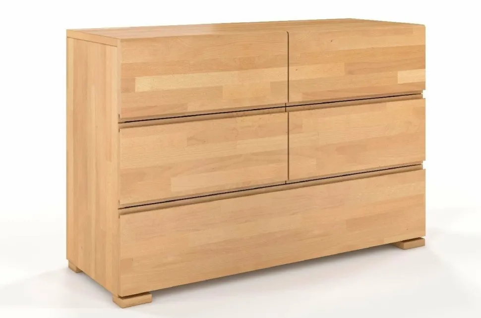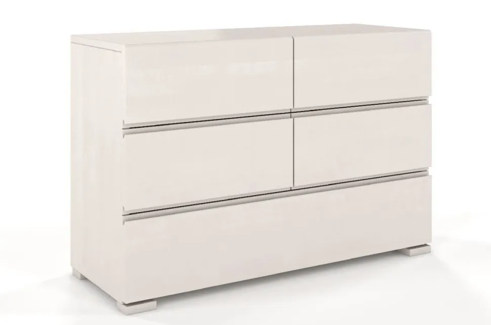 Komoda bukowa Skandica VESTRE z 6 szufladami to perfekcyjnie zgrane połączenie funkcjonalności i doskonałego designu. Zaprojektowana z myślą o nowoczesności, idealnie pasuje właśnie do takich wnętrz. Świetnie komponuje się z meblami z serii VESTRE. Ozdobi sypialnię, salon, przedpokój lub pokój nastolatka. Klasyczne uchwyty w komodzie zastąpiono wycięciami we frontach szuflad. Górna krawędź górnej szuflady – sąsiadująca z blatem – została zaokrąglona, dodając meblowi lekkości. Prowadnice szuflad w komodzie VESTRE wzbogacono o system cichego domyku i hamulce. Dzięki temu szuflady domykają się cicho i miękko, a właściwie same.