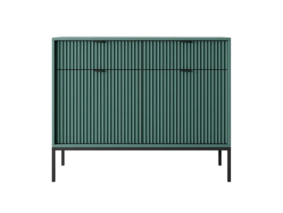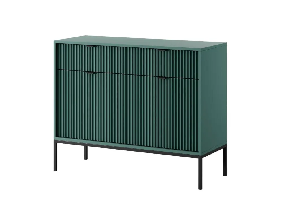 Komoda Delicious ryflowana zielona z czarnymi uchwytami